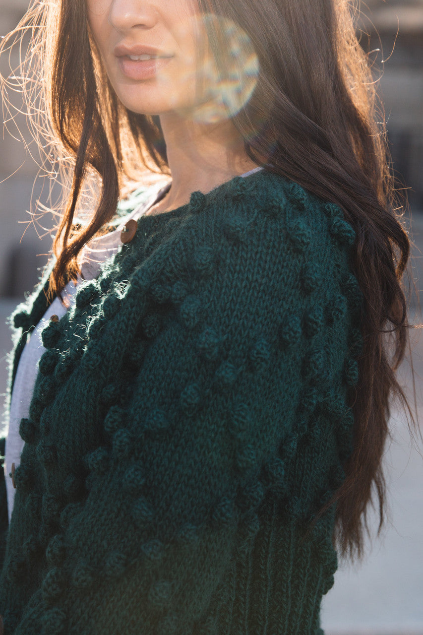 Hand Knit Nepali Wool Jill Sweater in Emerald Green