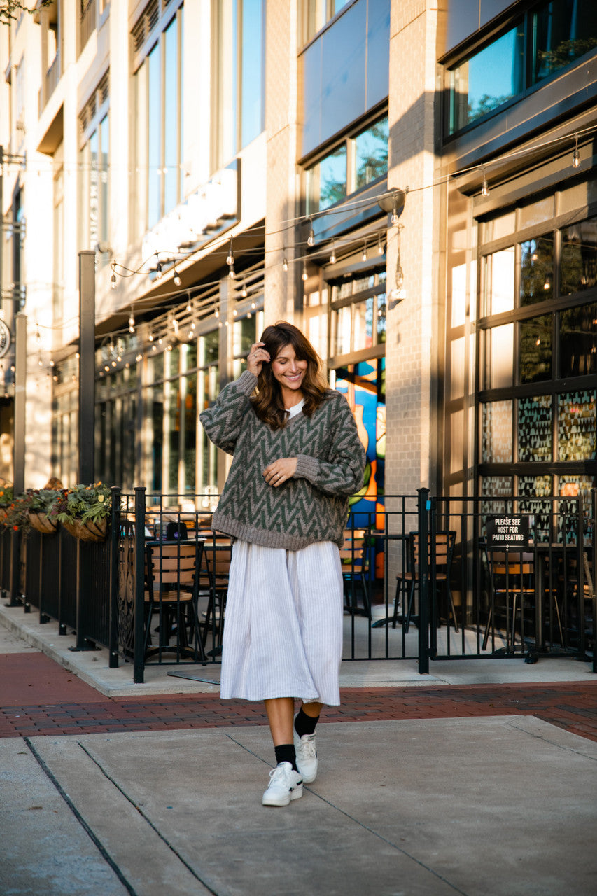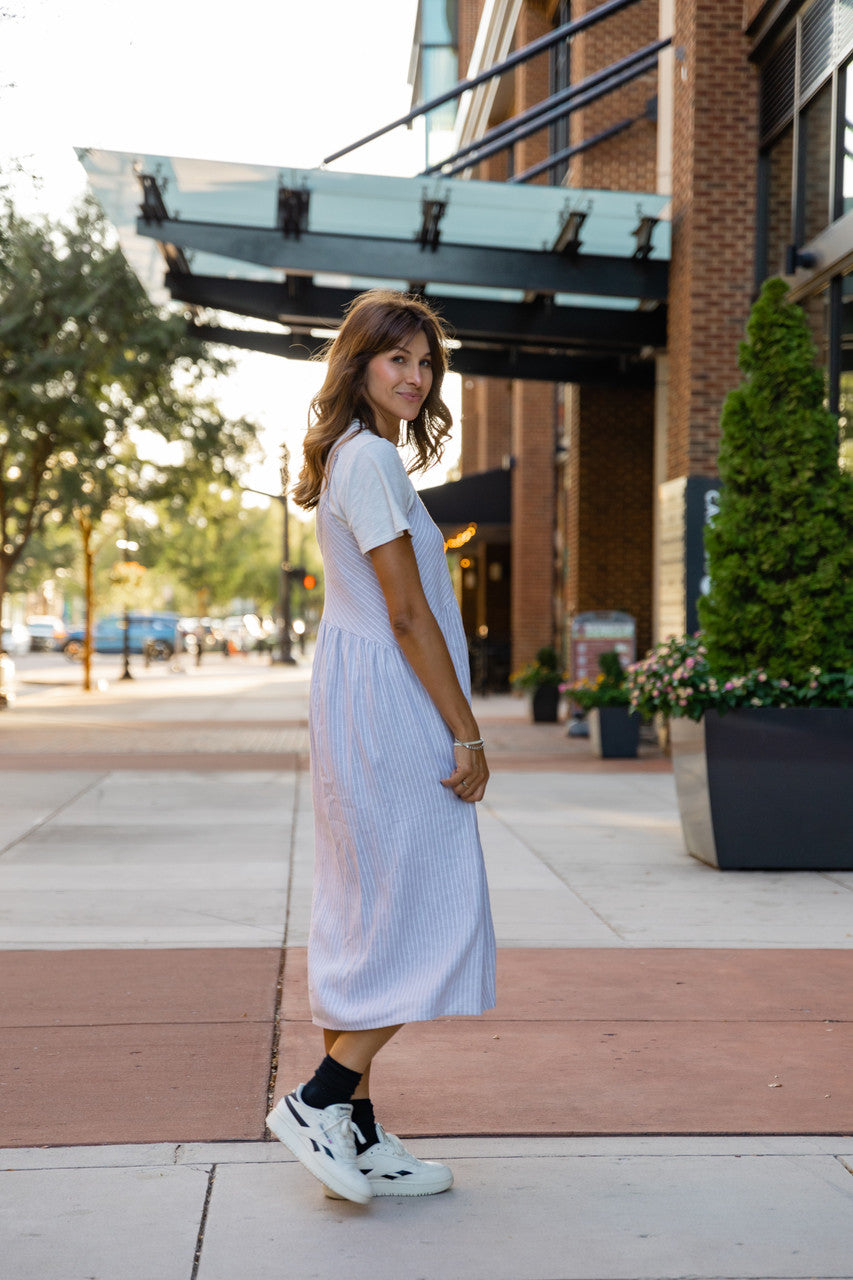 Faro Dress in Recycled Beige and White Linen Made to Order