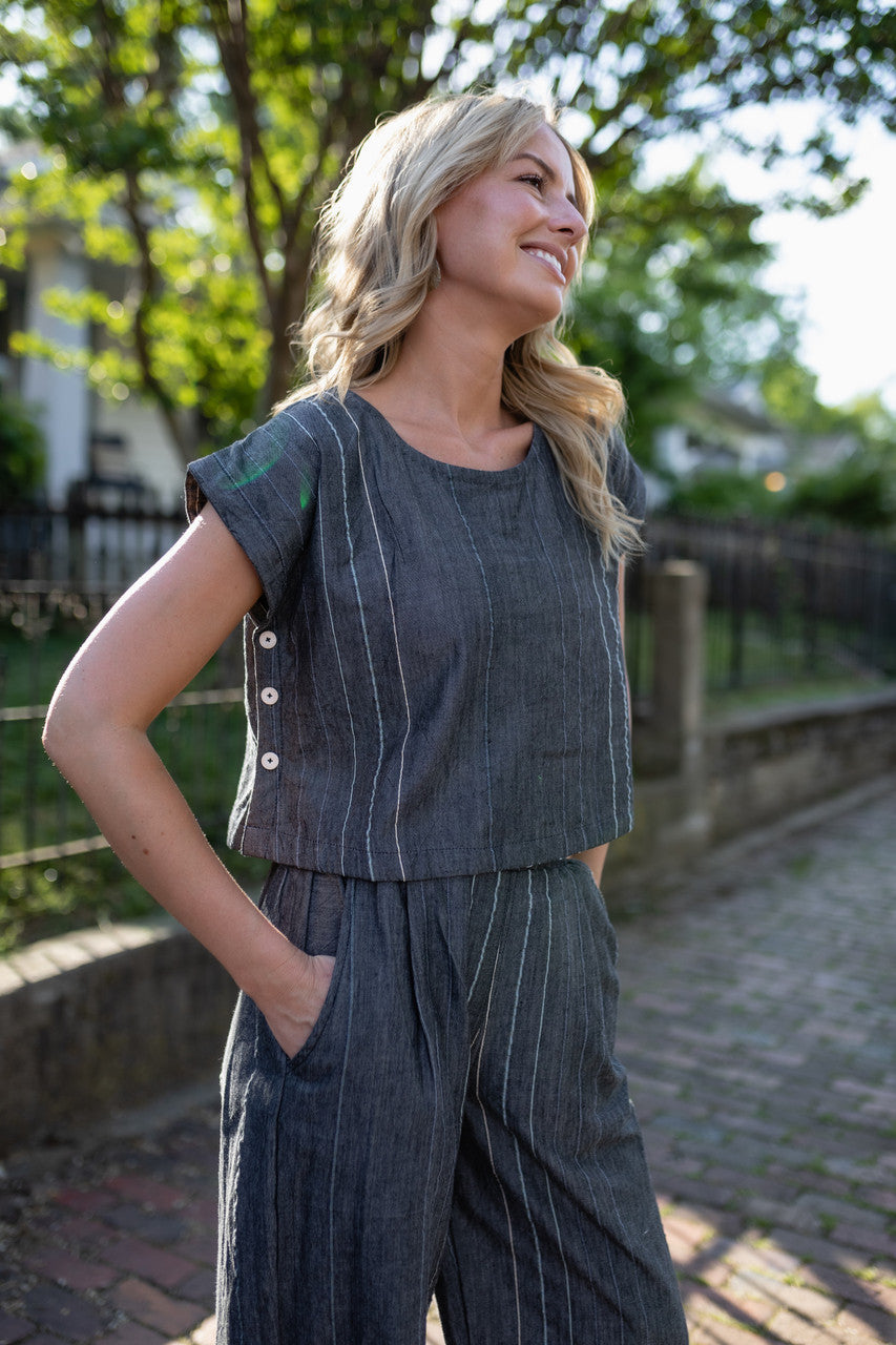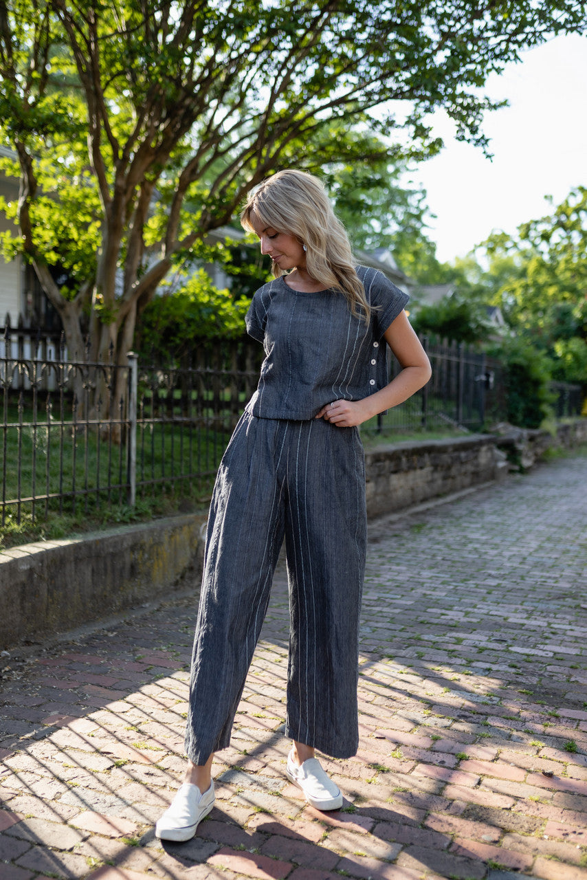 Handwoven Cotton Crop Pants in Midnight Chambray