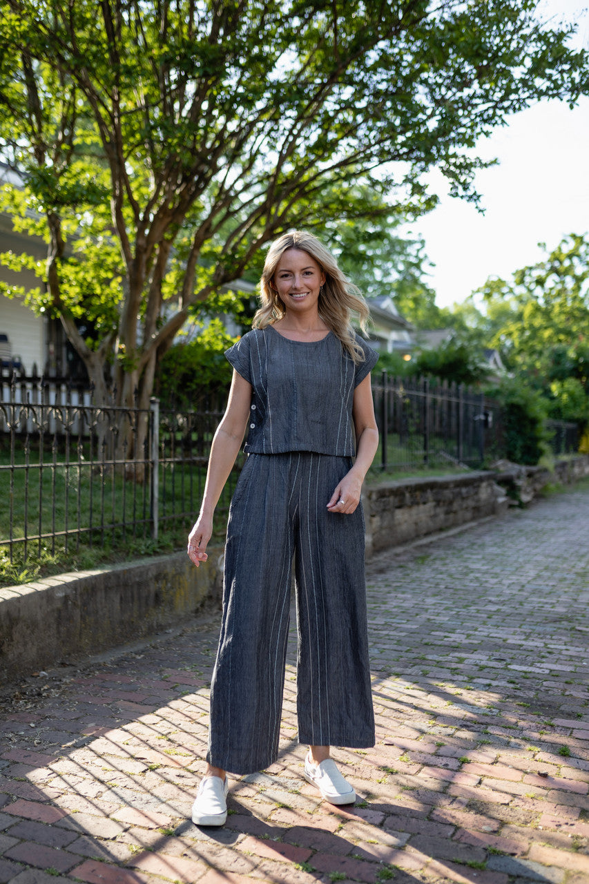 "I cannot express my obsession with this set. This is my dream outfit. The weight of the fabric it light and airy, yet sturdy. I was afraid it was going to be a bit heavy and stiff. The fit is fantastic. I was so hesitant to order pleated pants, but I love it so much, I placed another preorder within hours of trying it on. I wish I could have one in every color!!" - Kerry