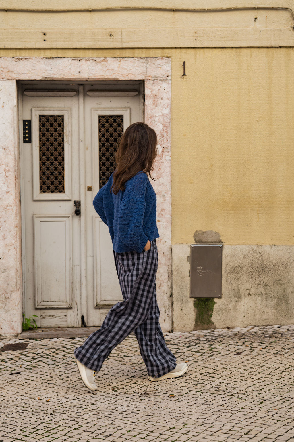 Katie Handwoven Cotton Pants in Navy Gingham
