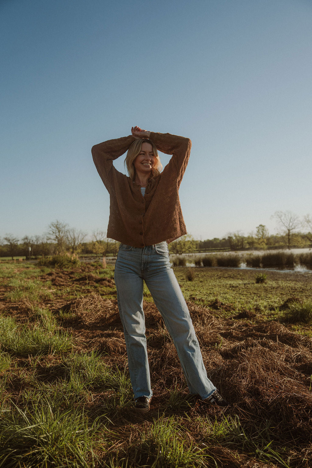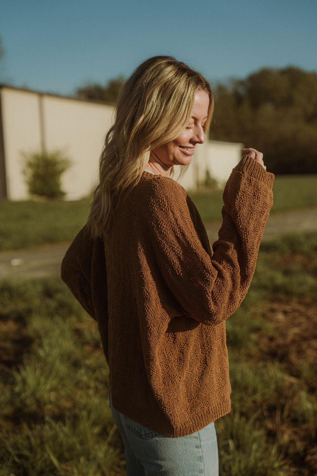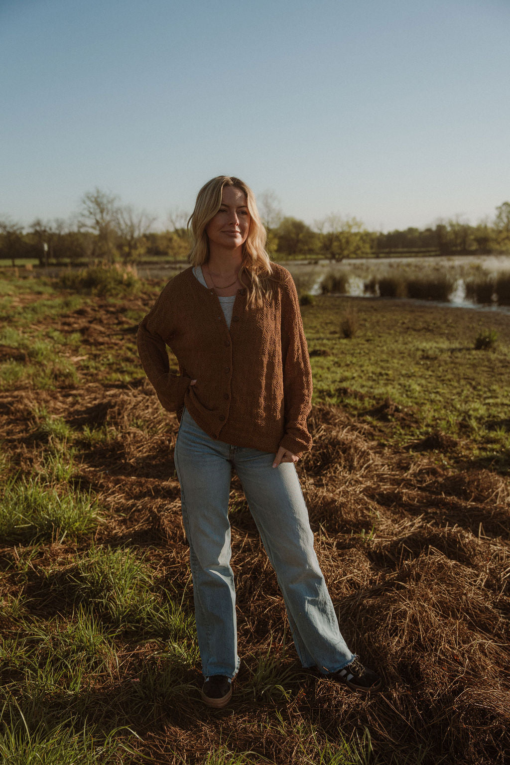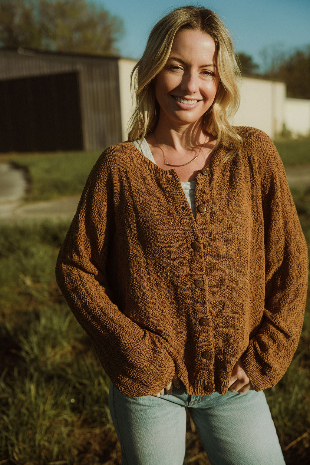 Liza Textured Knit Cotton Cardigan in Caramel Made to Order