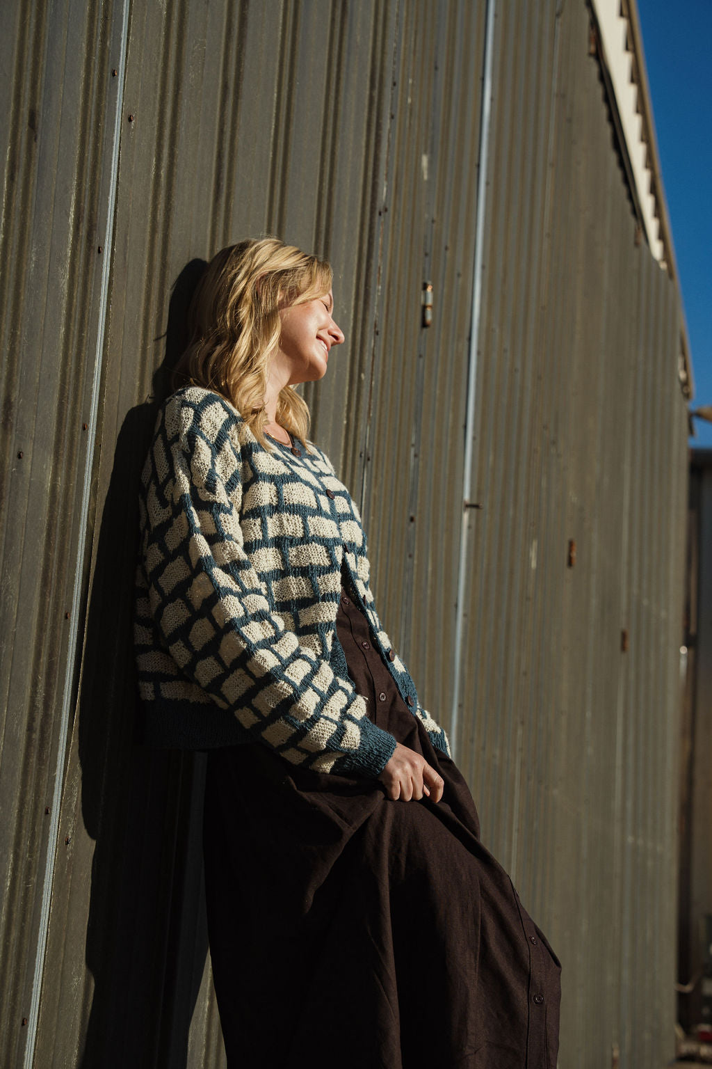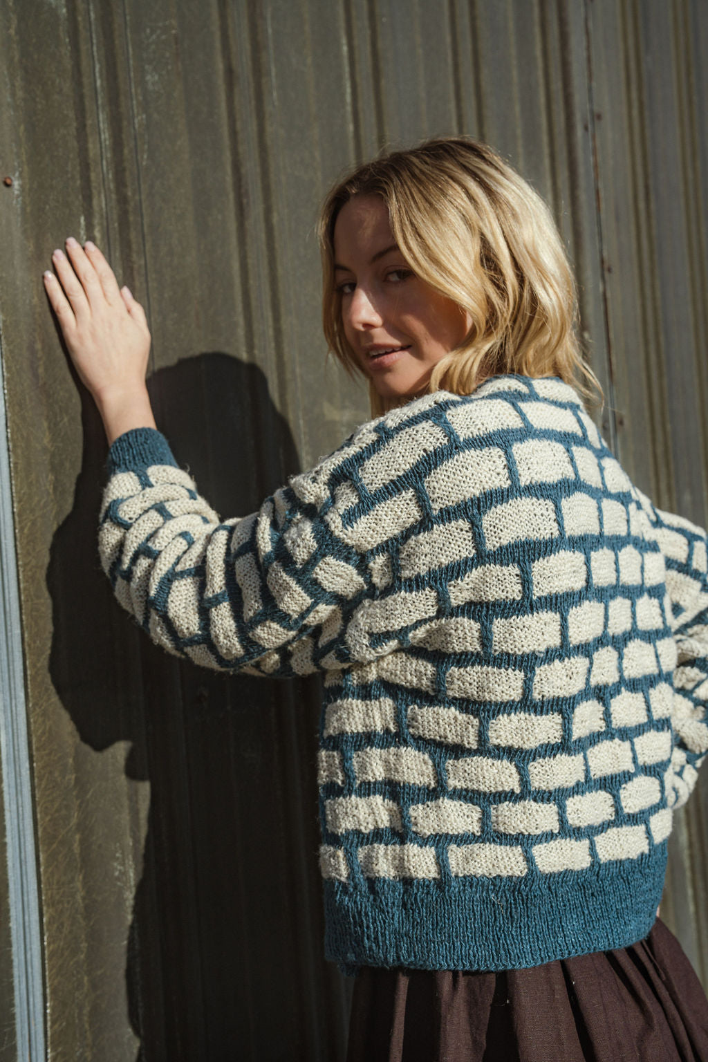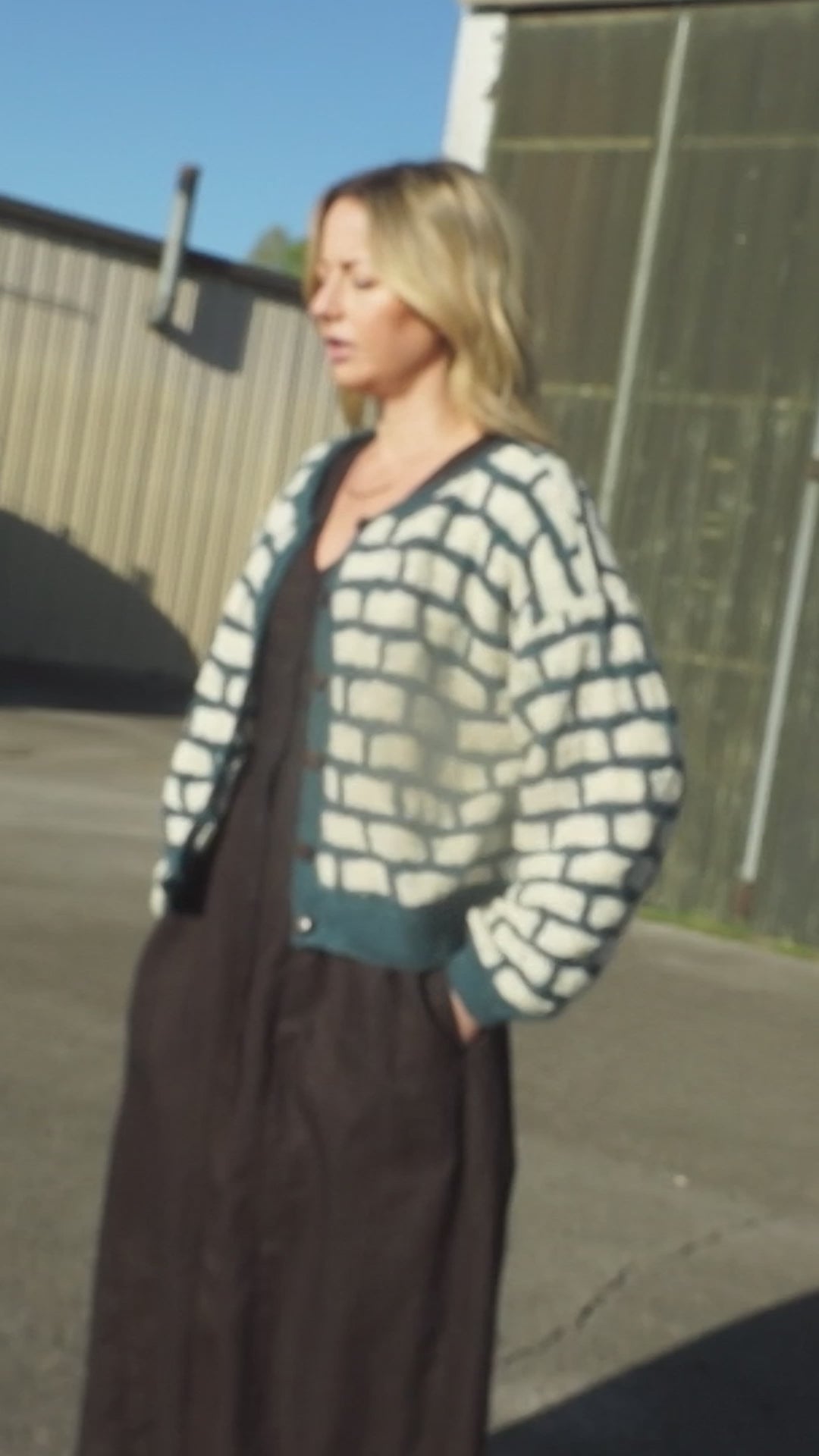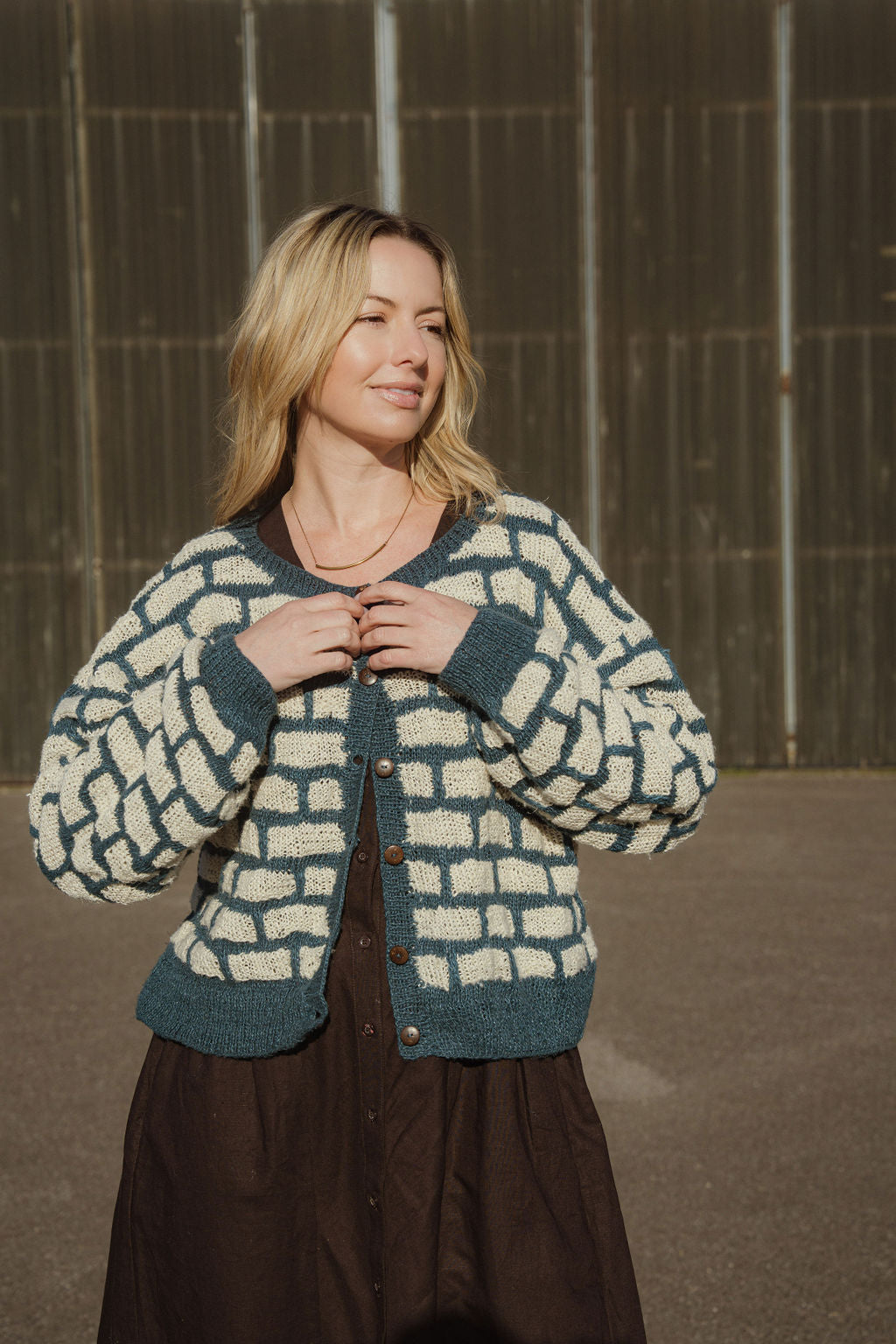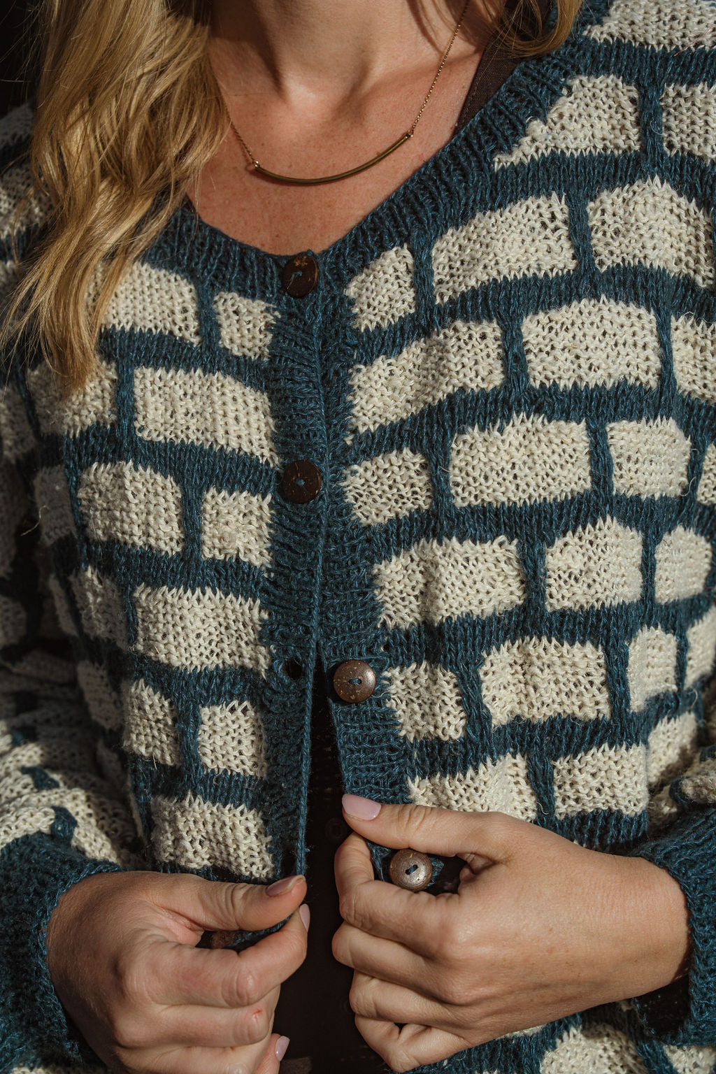 Brick knit cardigan with an easy fit and textured color. Nettle allo and cotton blend has a linen-like texture.