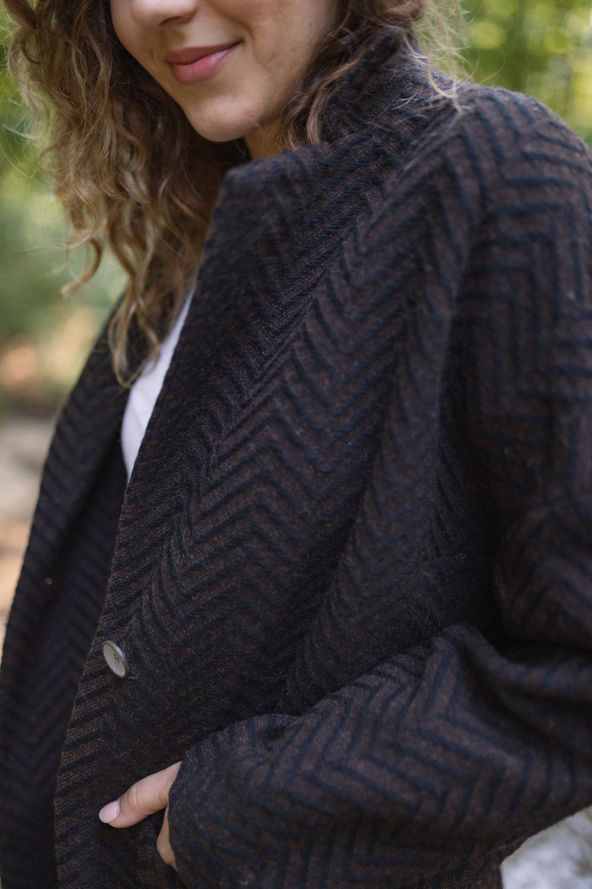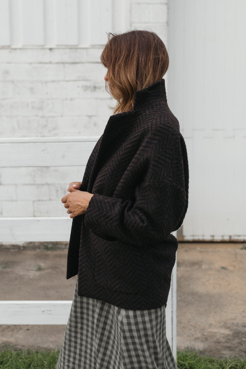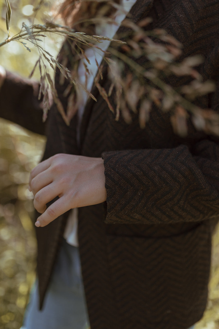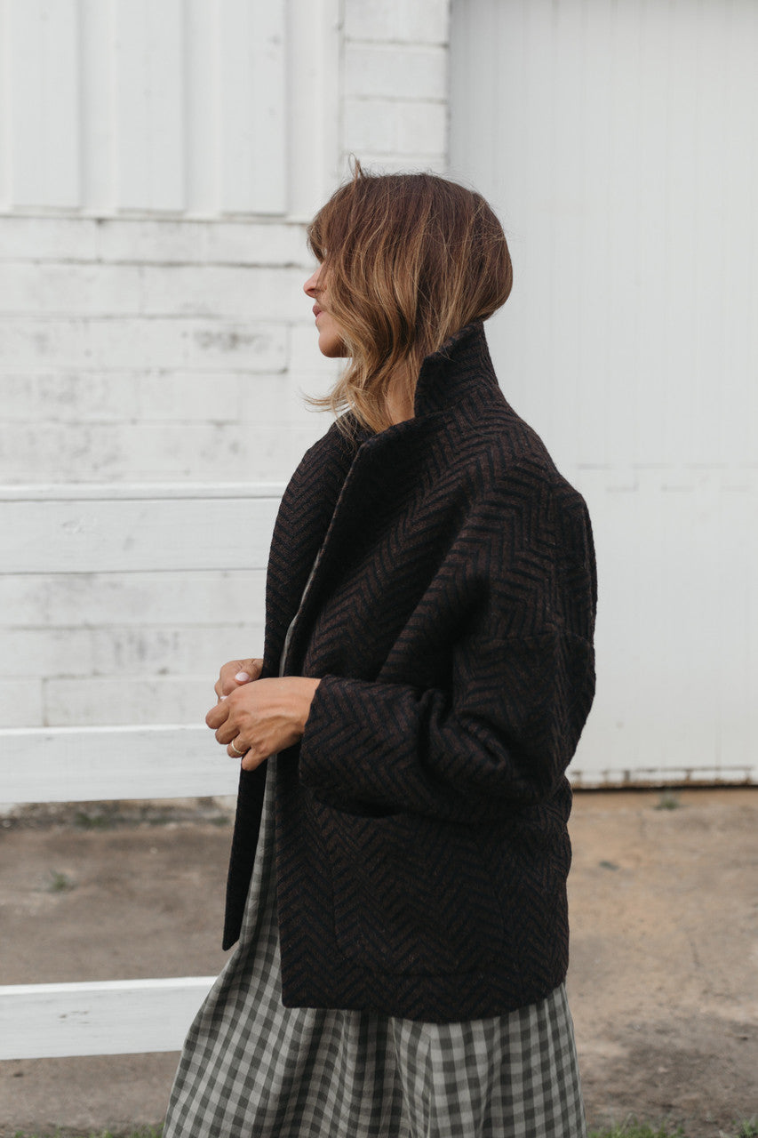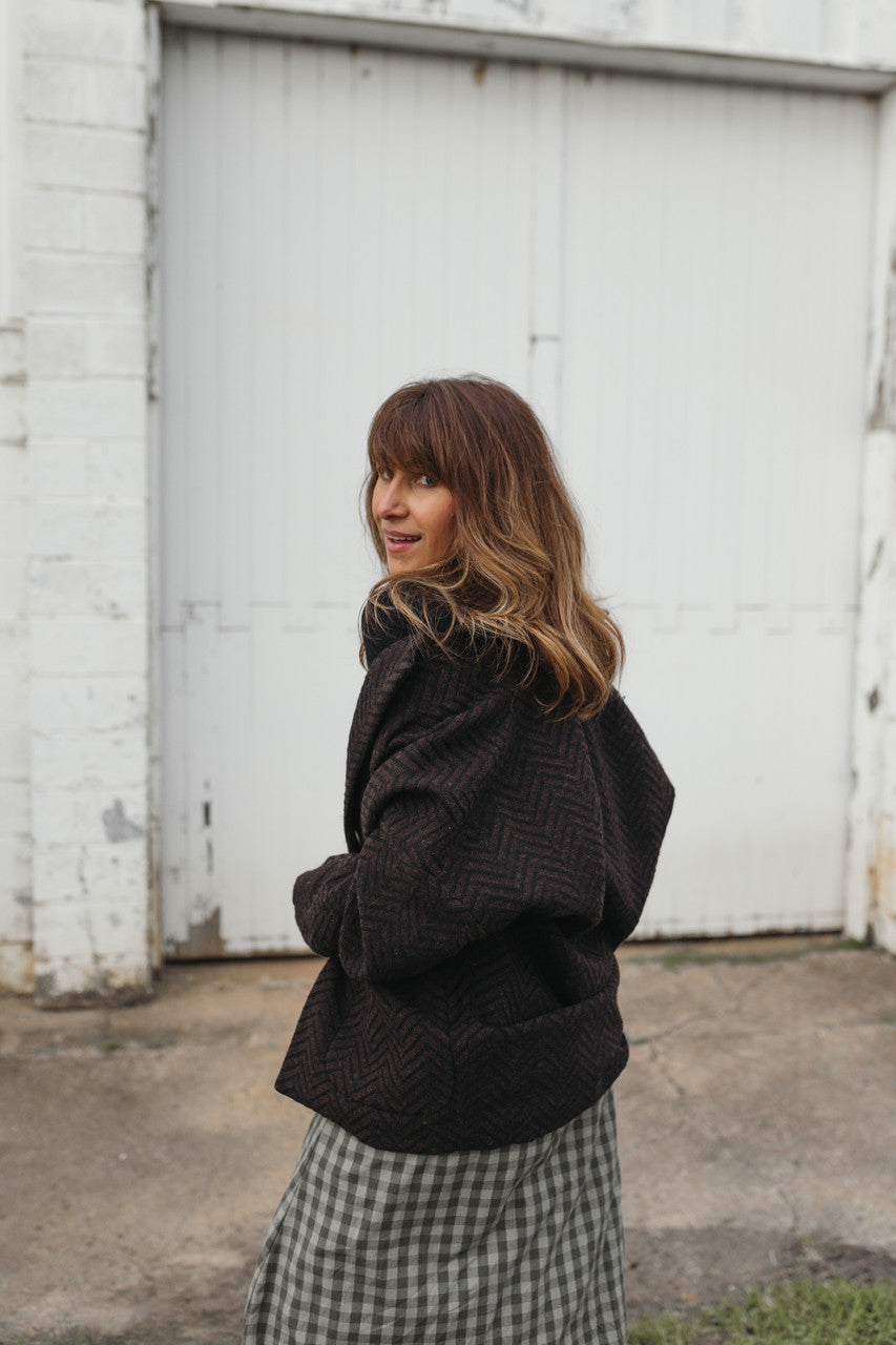 Portuguese Wool Pieper Coat in Black and Brown Herringbone Made to Order