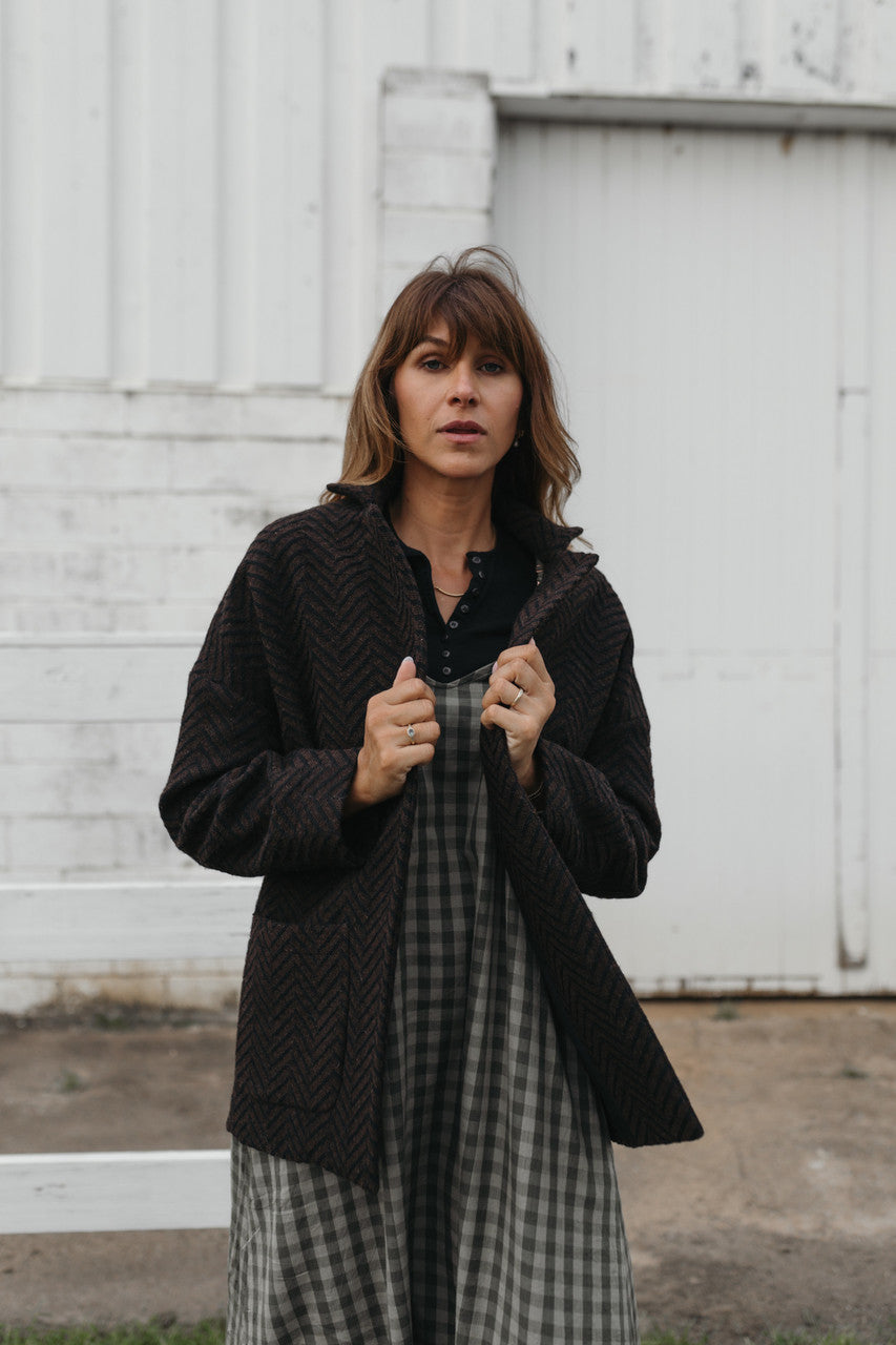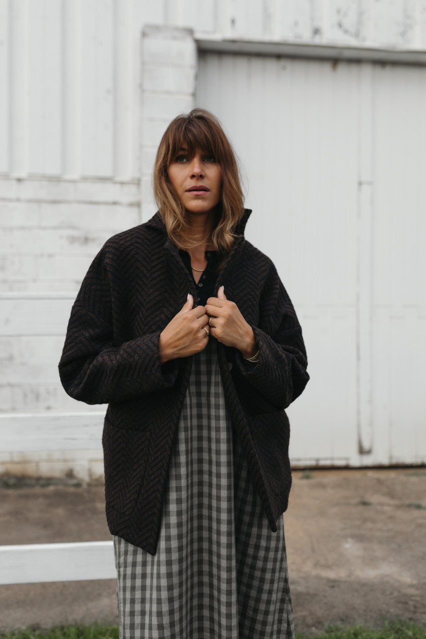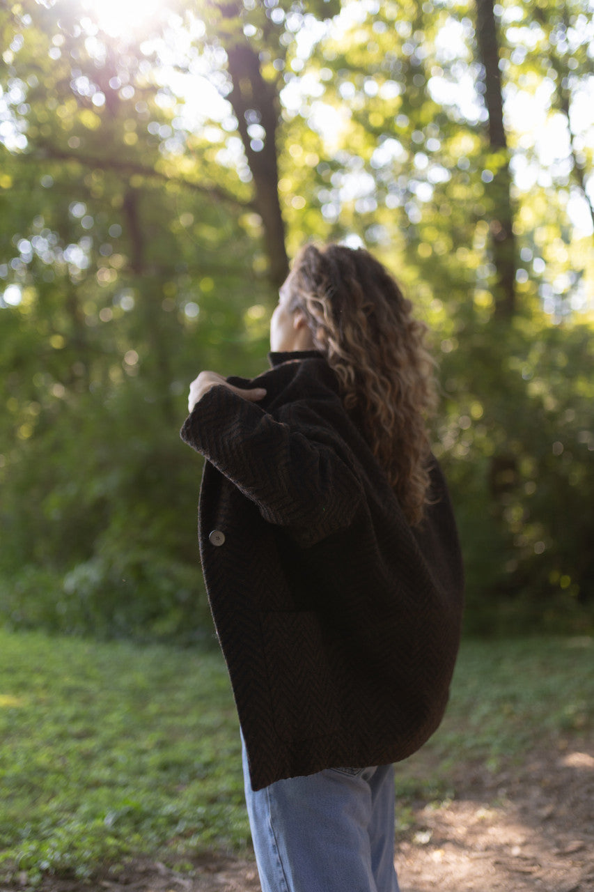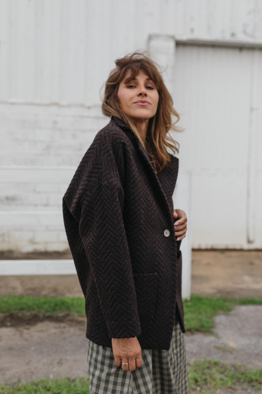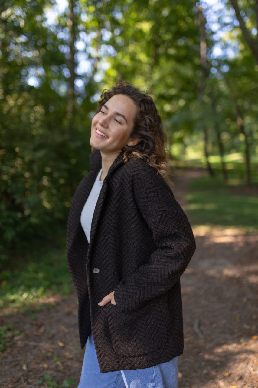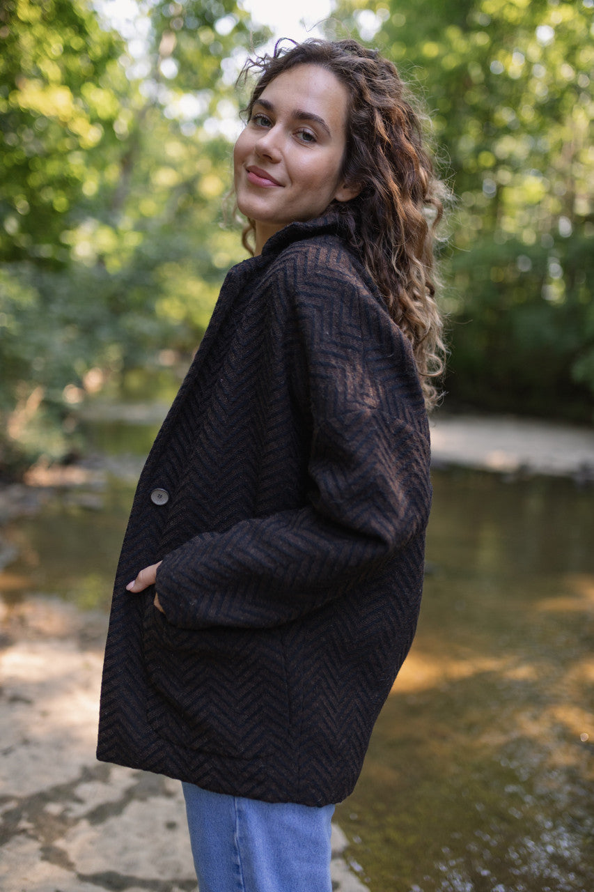 Portuguese Wool Pieper Coat in Black and Brown Herringbone Made to Order