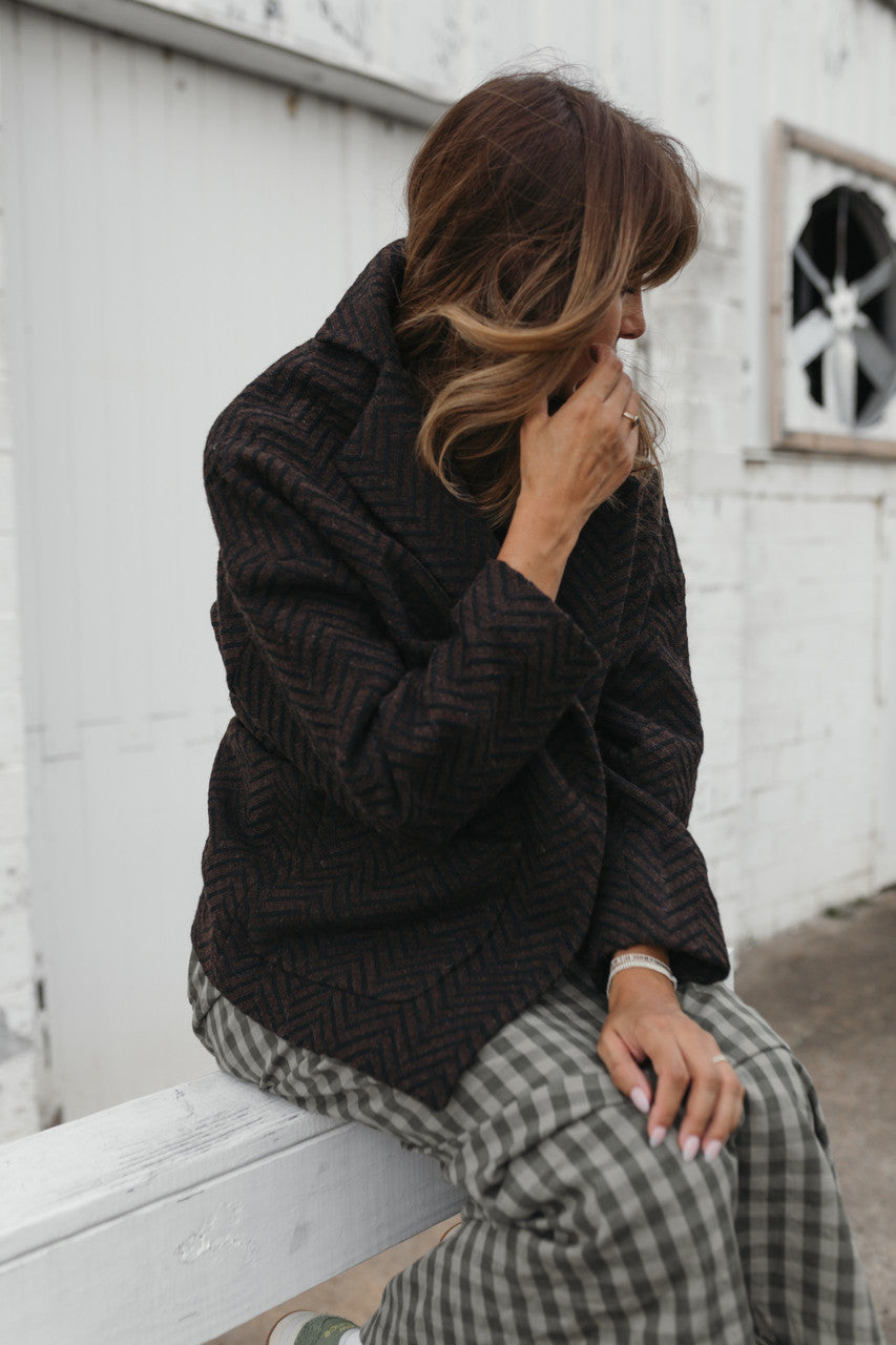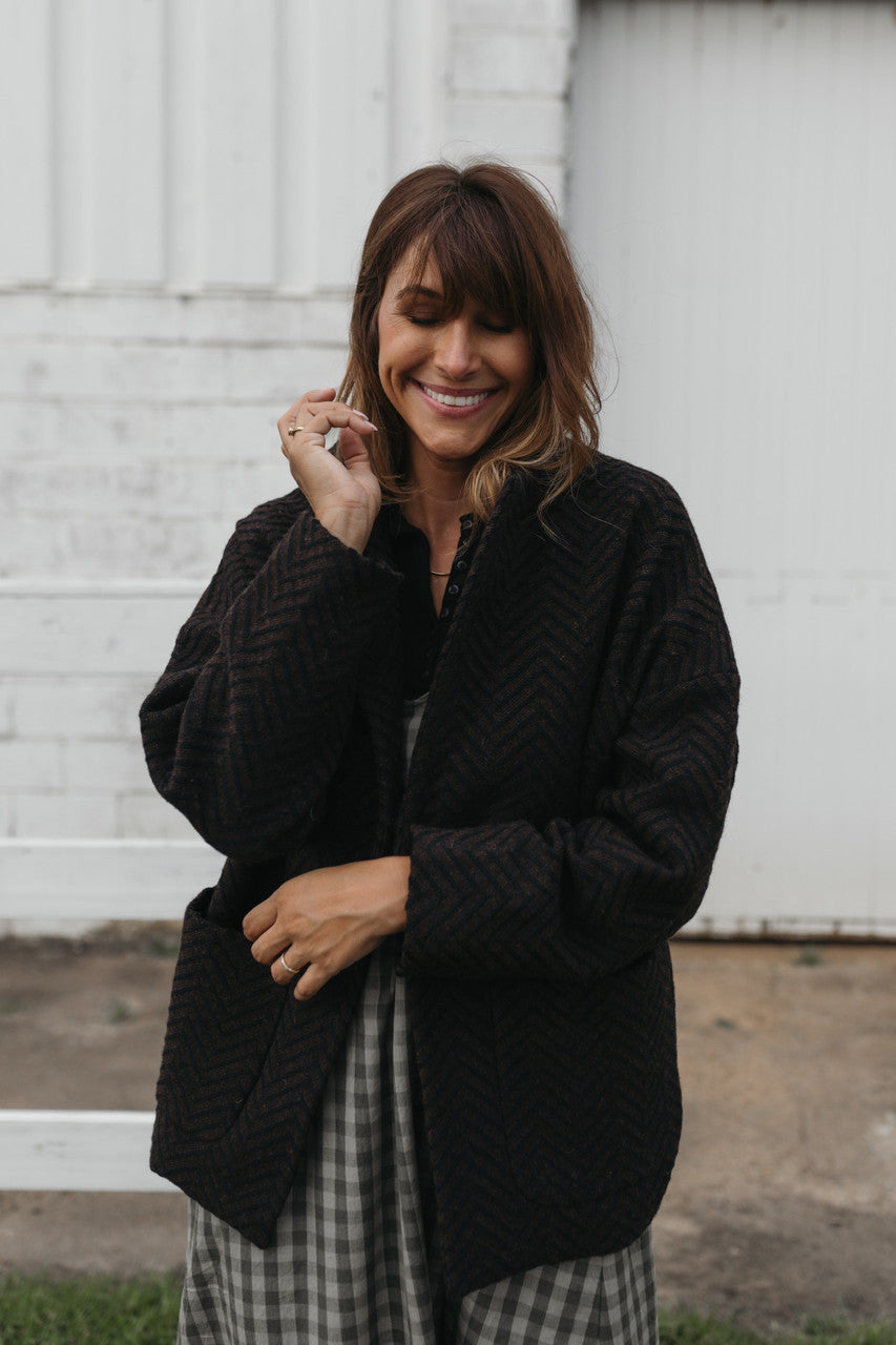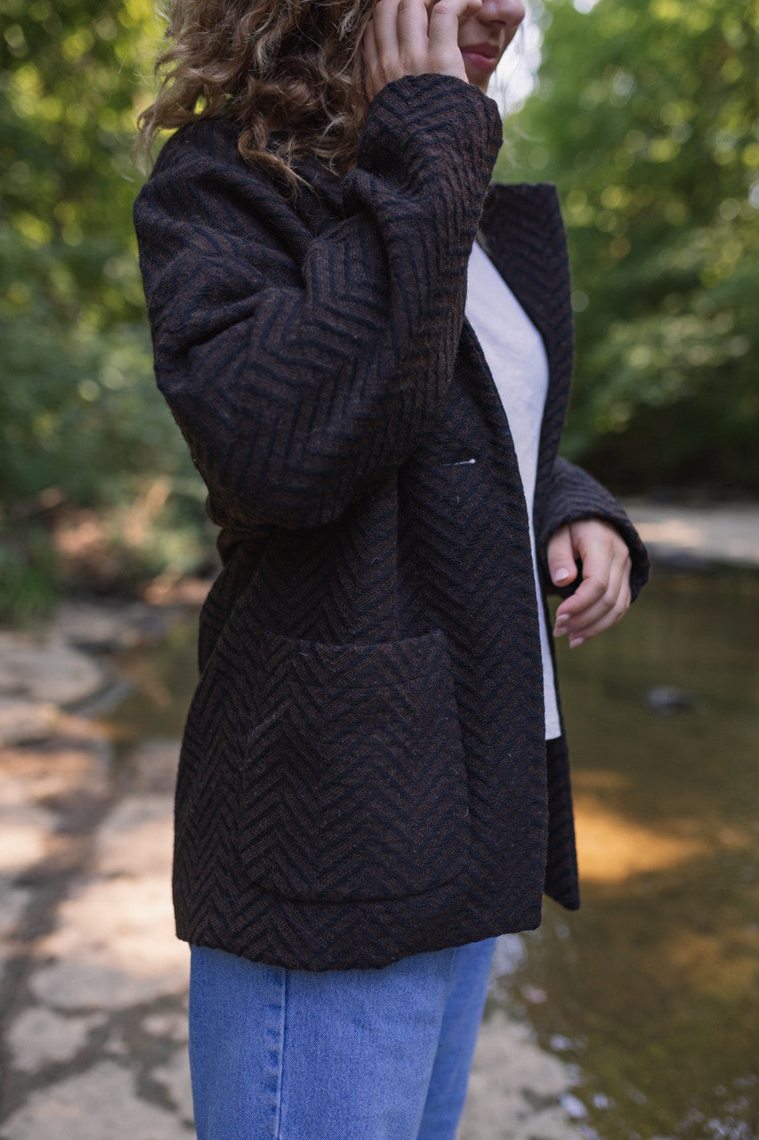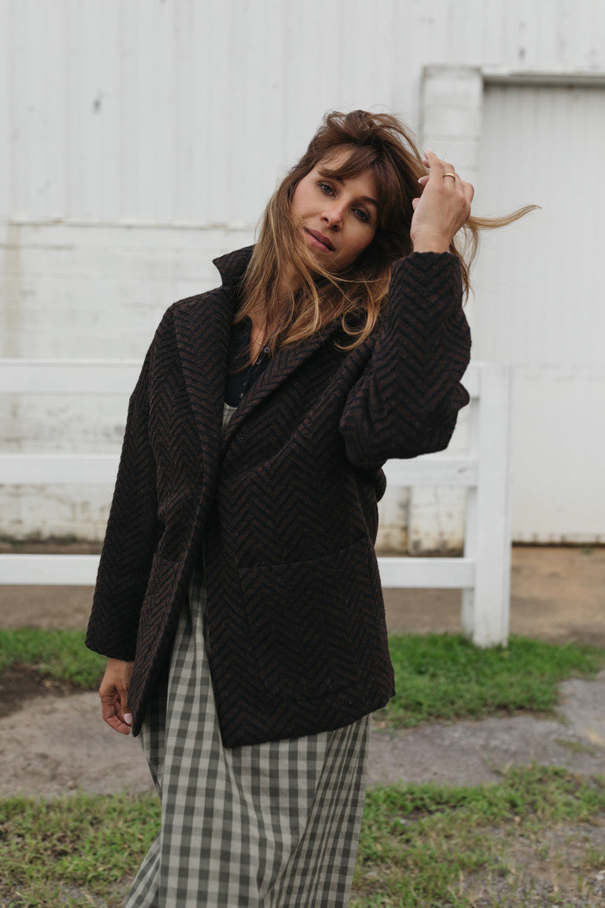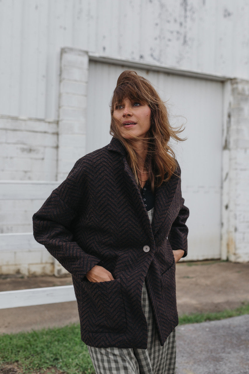 Portuguese Wool Pieper Coat in Black and Brown Herringbone Made to Order