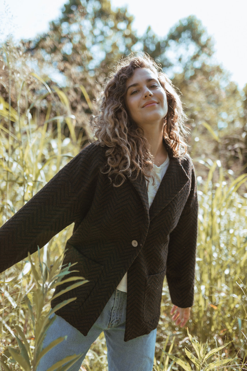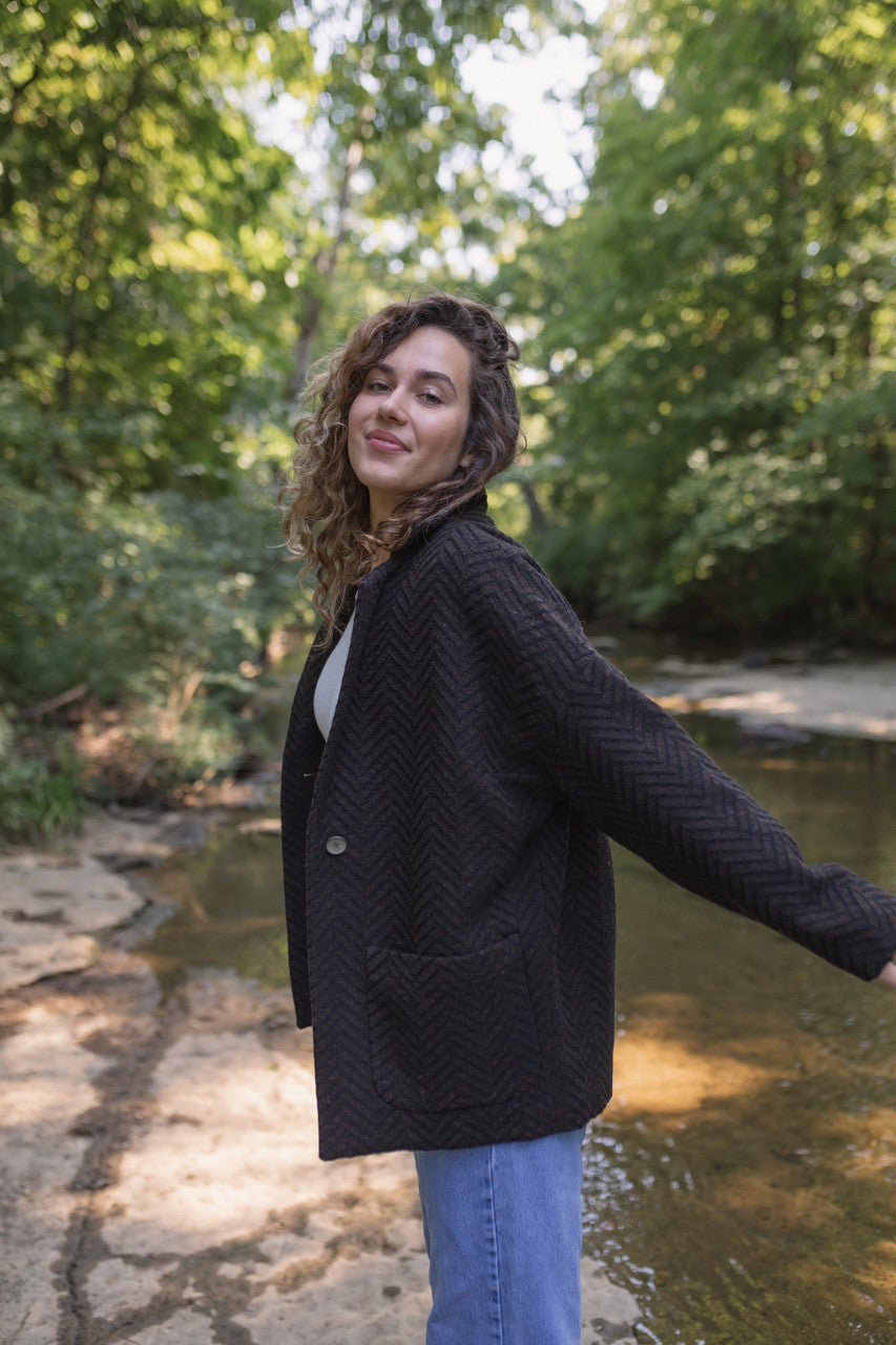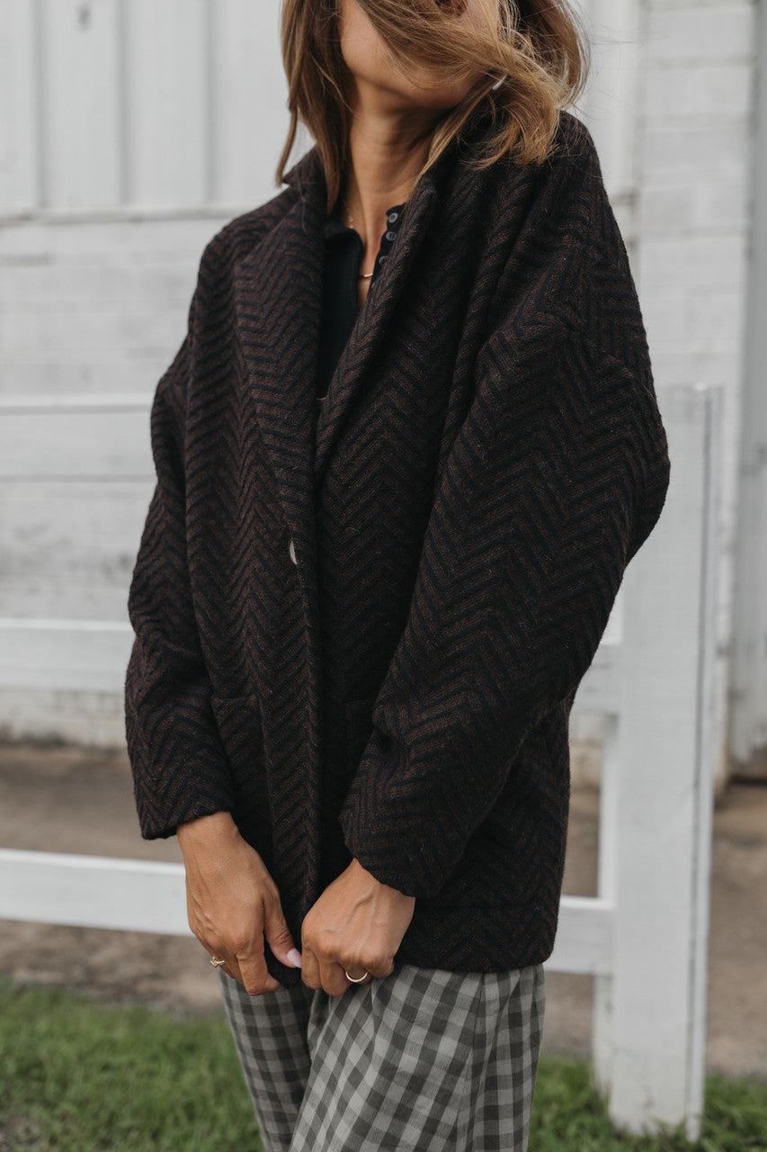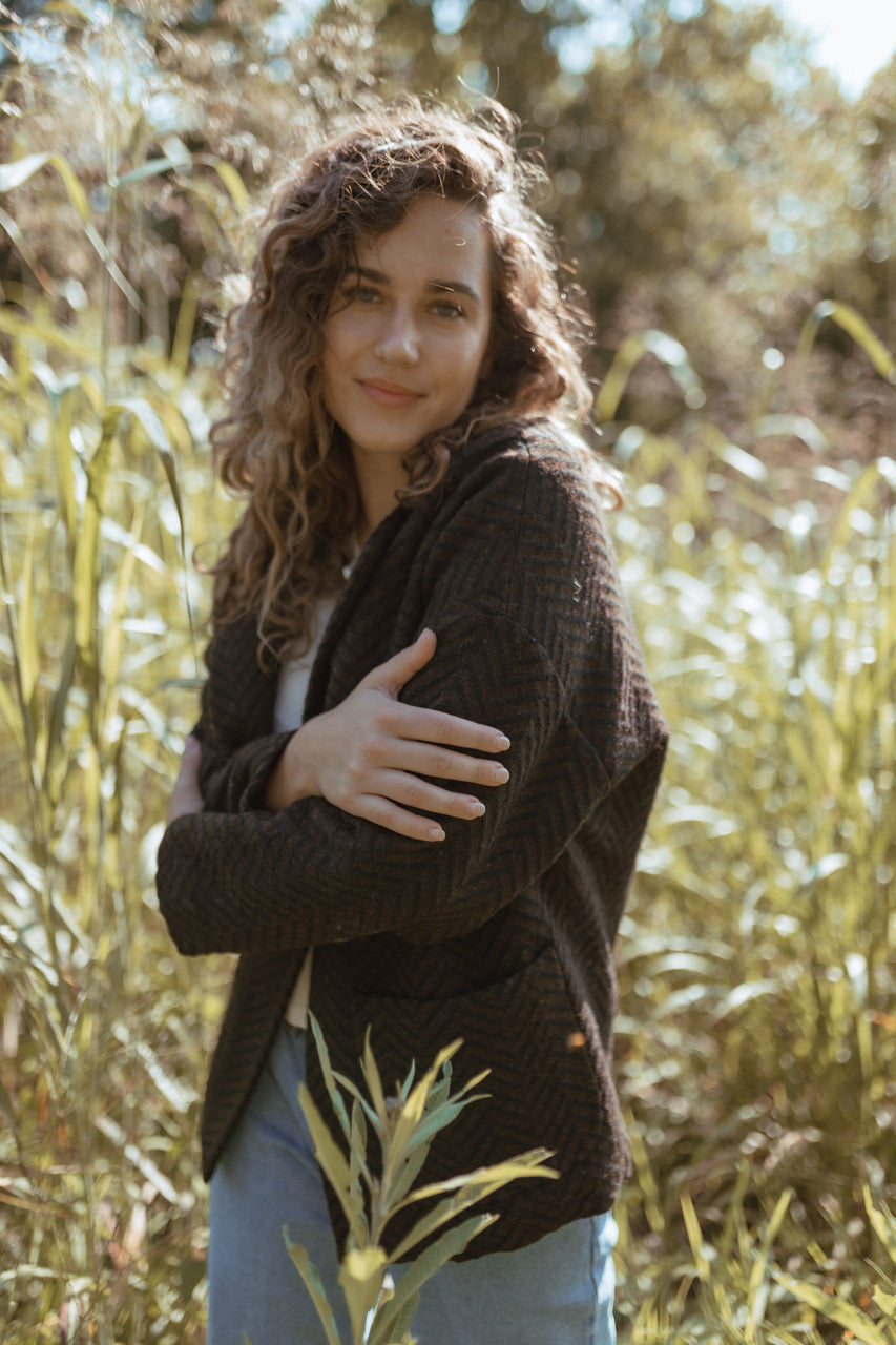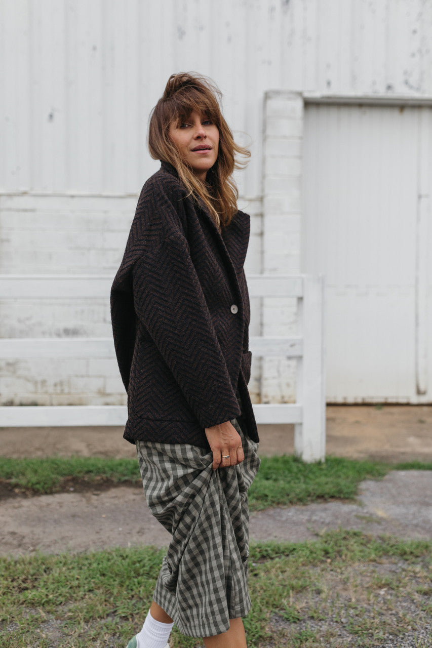 Portuguese Wool Pieper Coat in Black and Brown Herringbone Made to Order