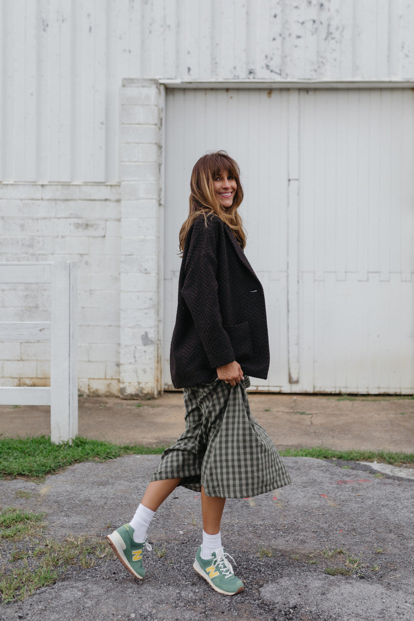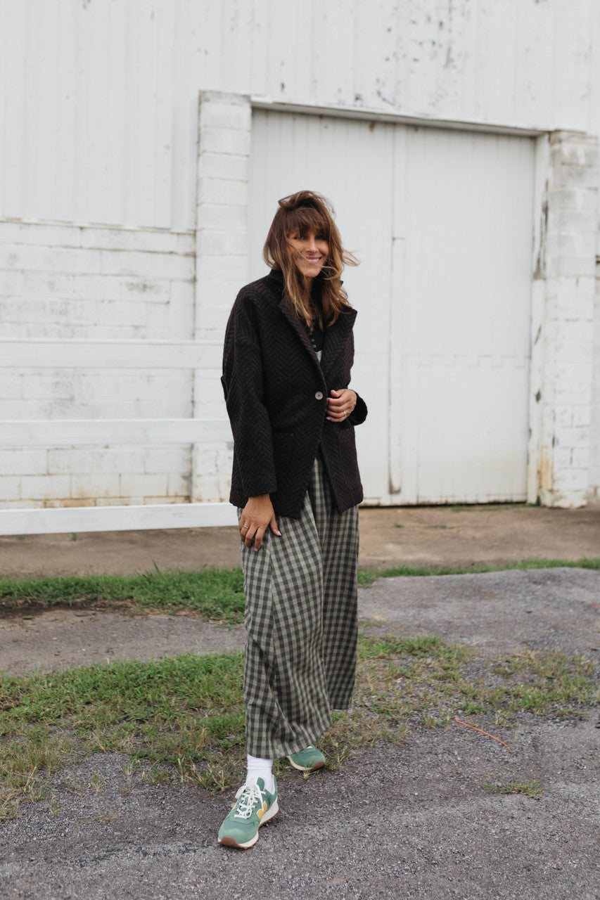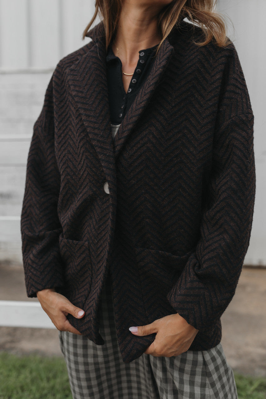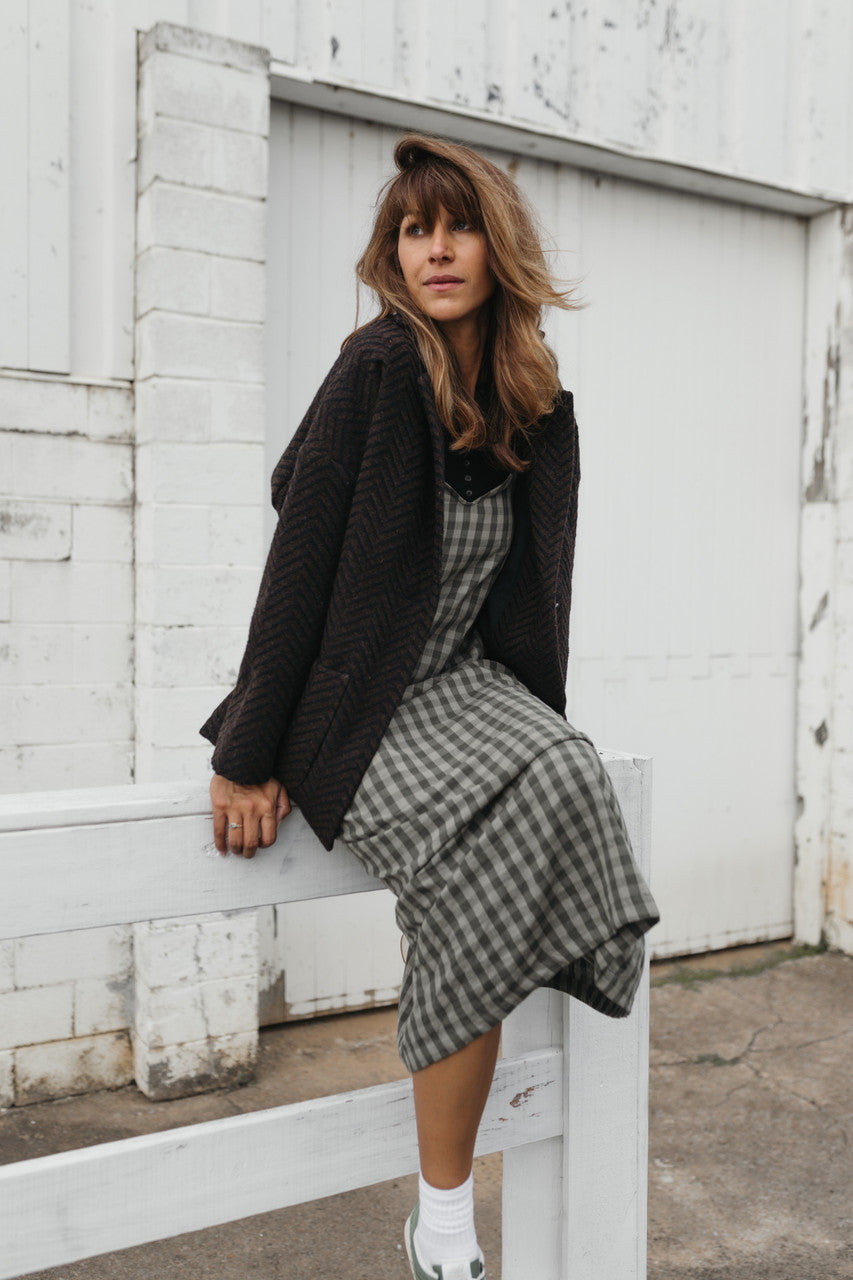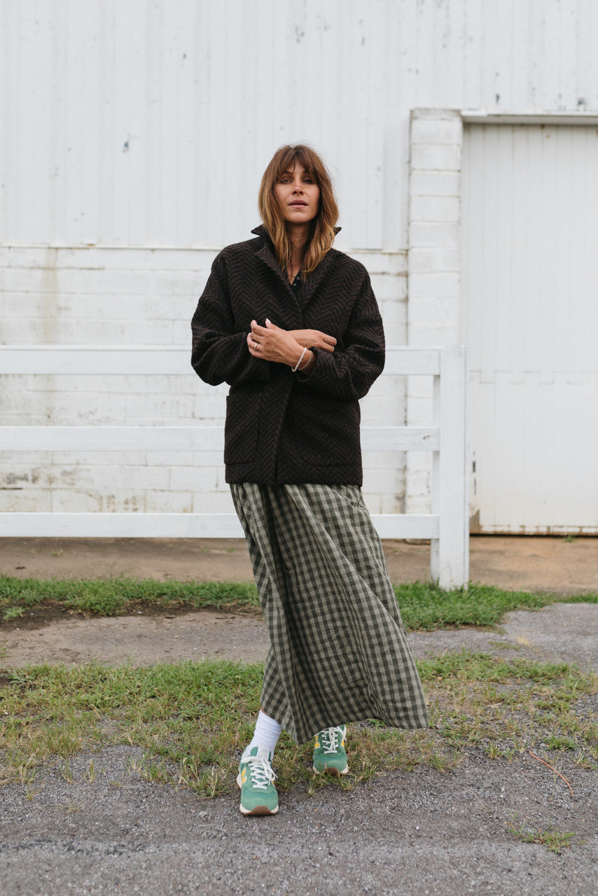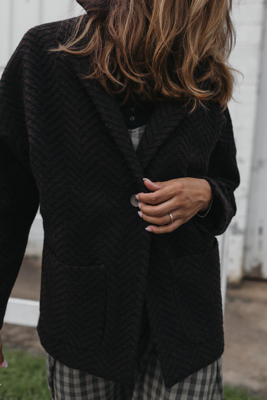 Portuguese Wool Pieper Coat in Black and Brown Herringbone Made to Order