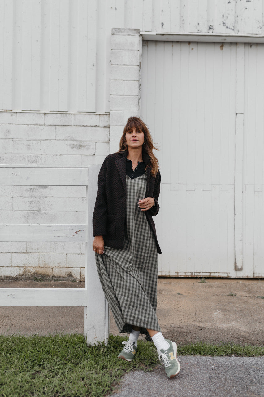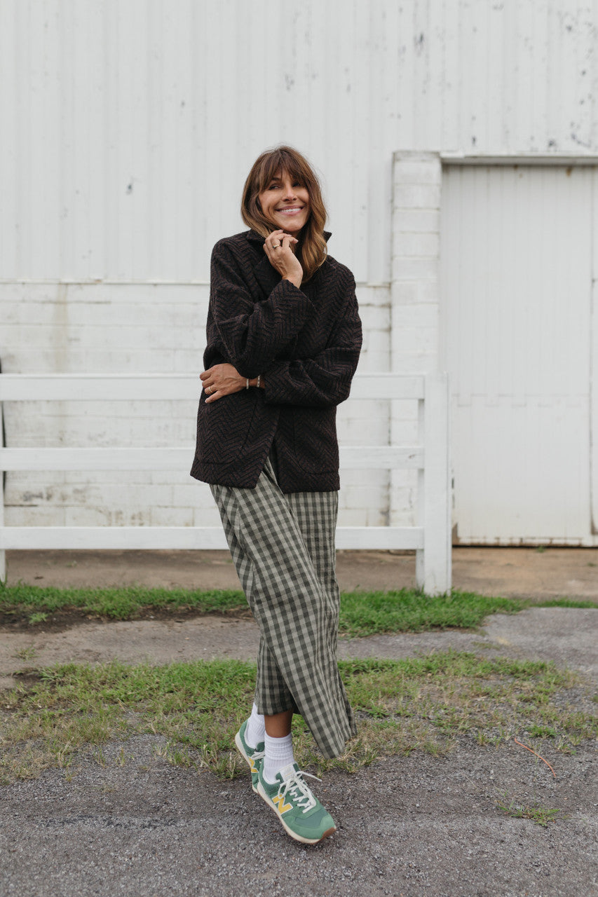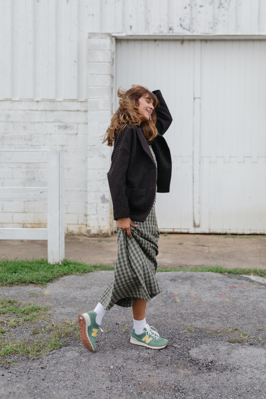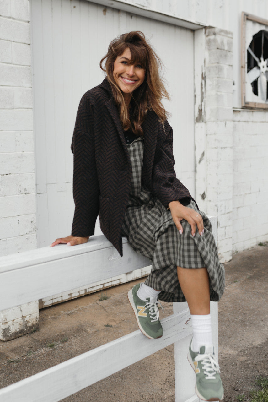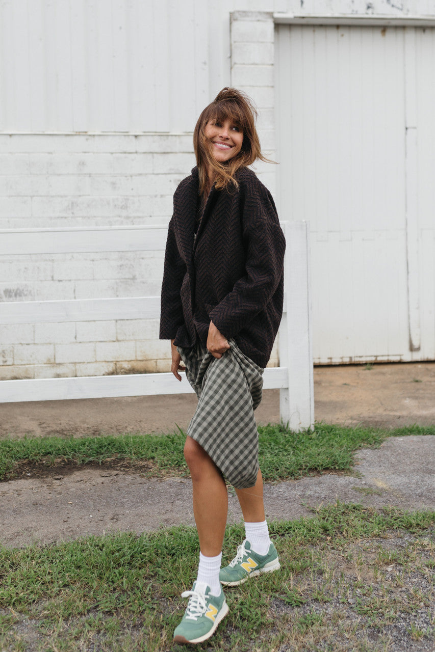 Portuguese Wool Pieper Coat in Black and Brown Herringbone Made to Order
