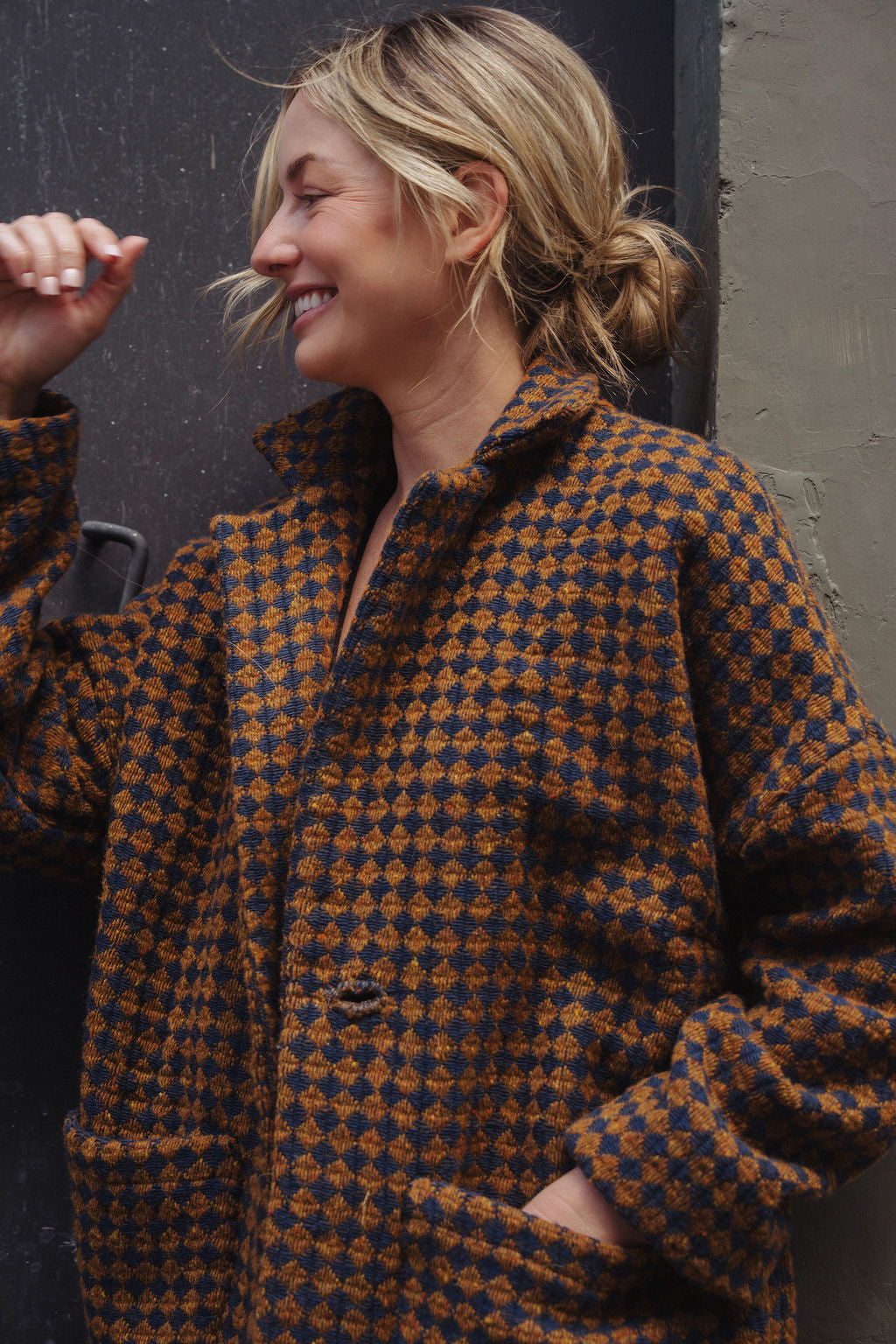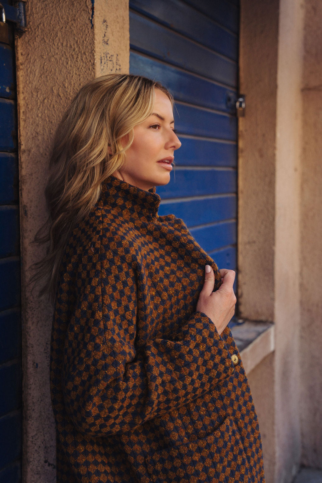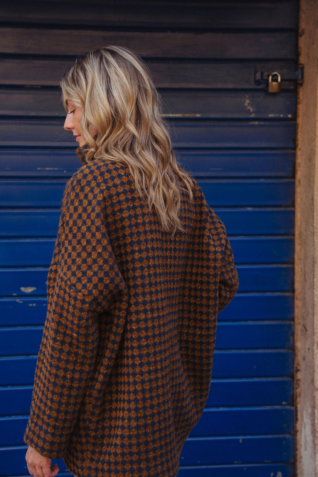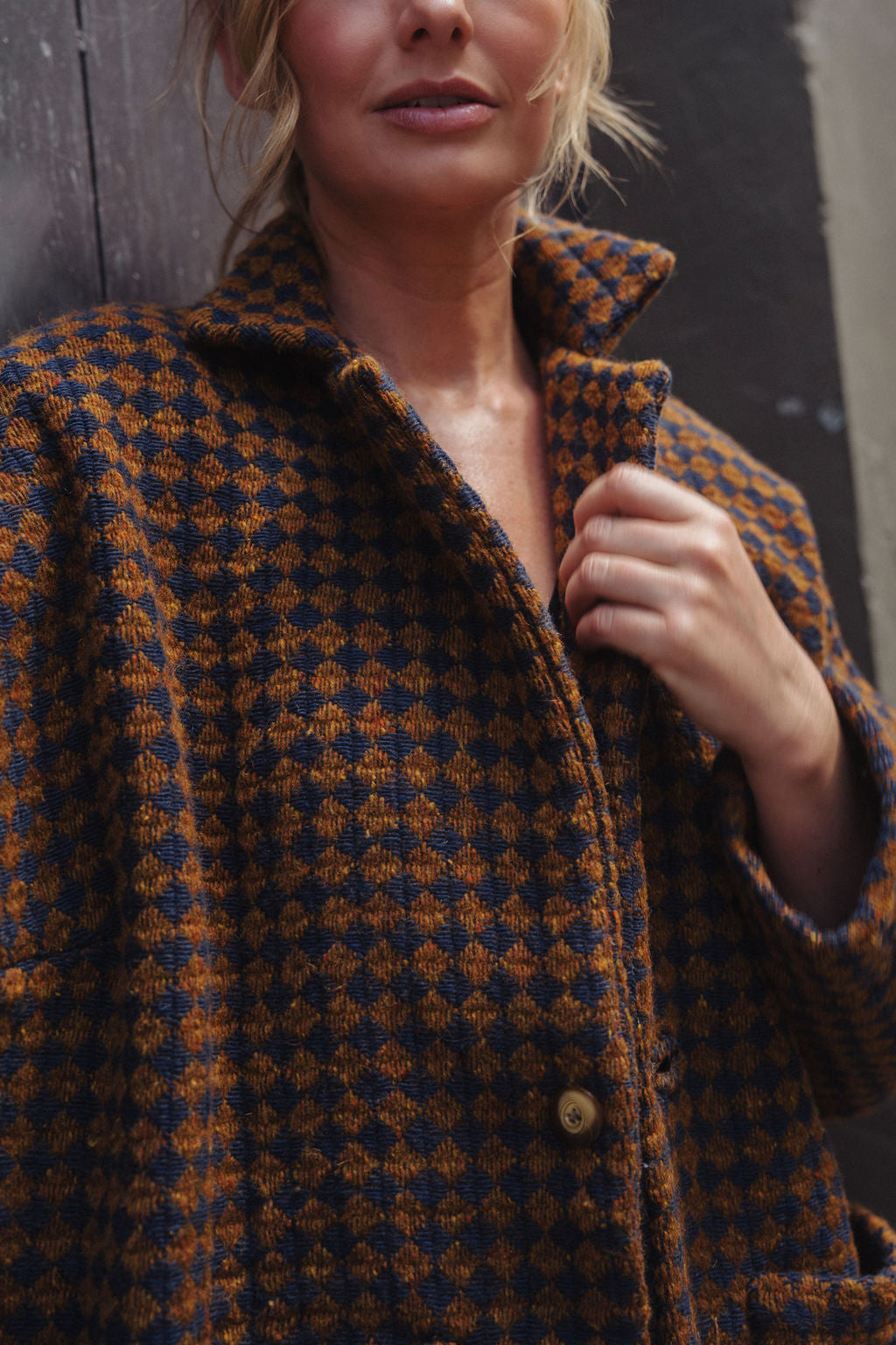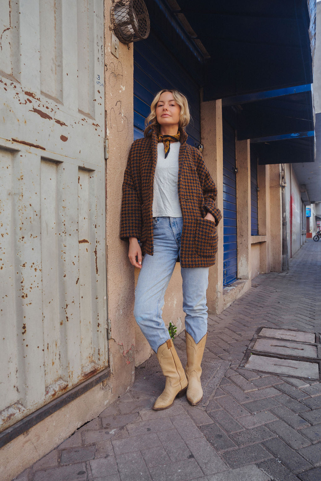 Portuguese Wool Pieper Coat in Brown and Navy Small Check Made to Order