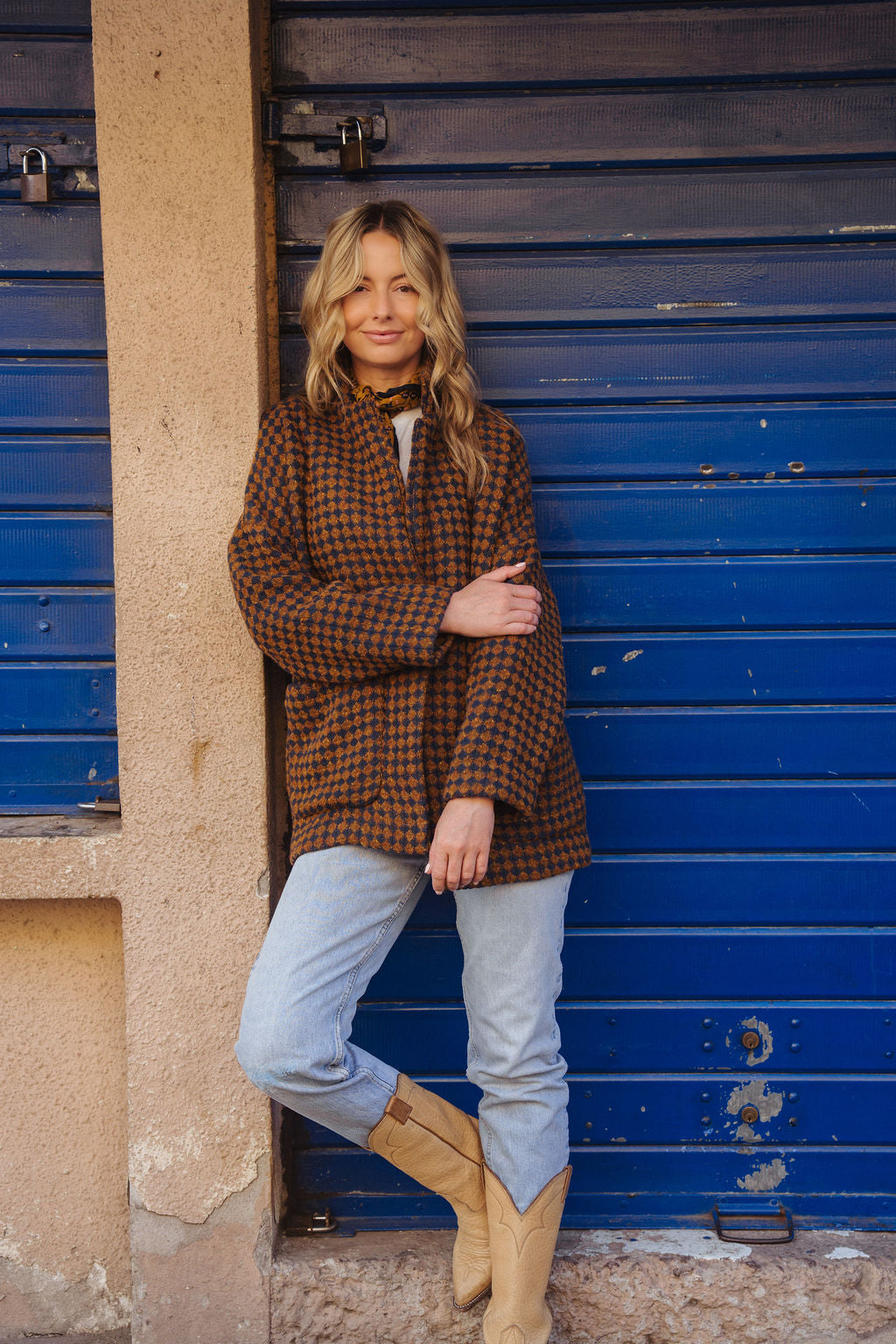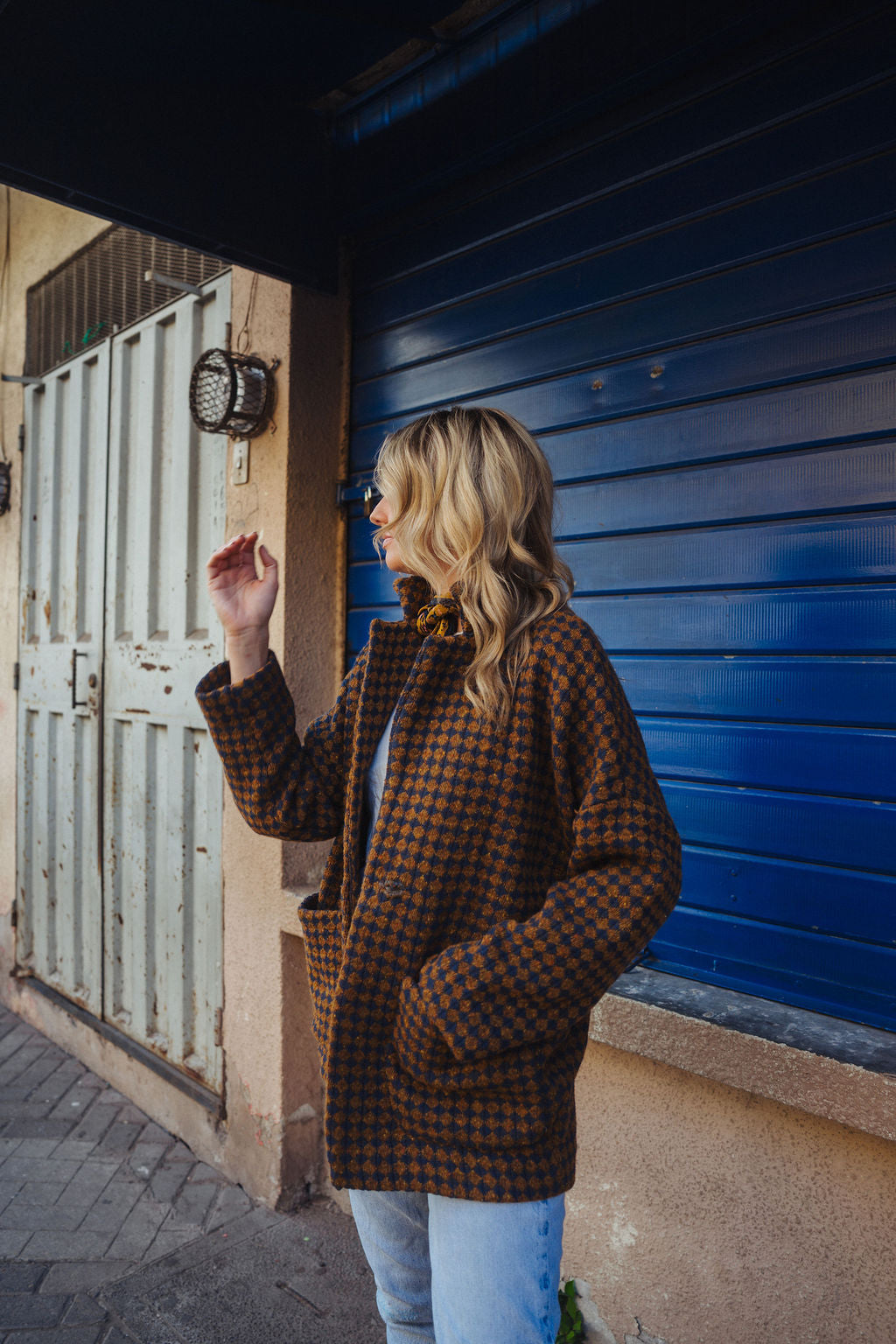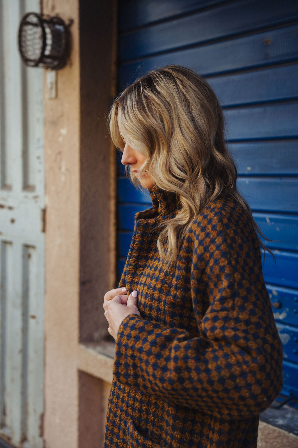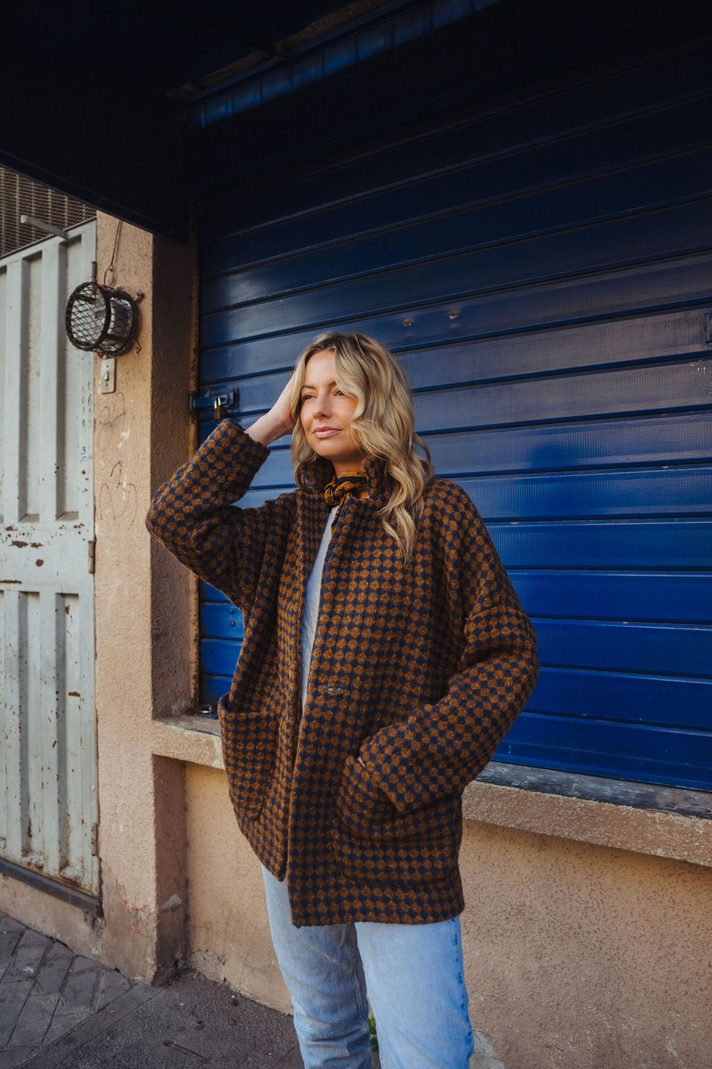Portuguese Wool Pieper Coat in Brown and Navy Small Check Made to Order