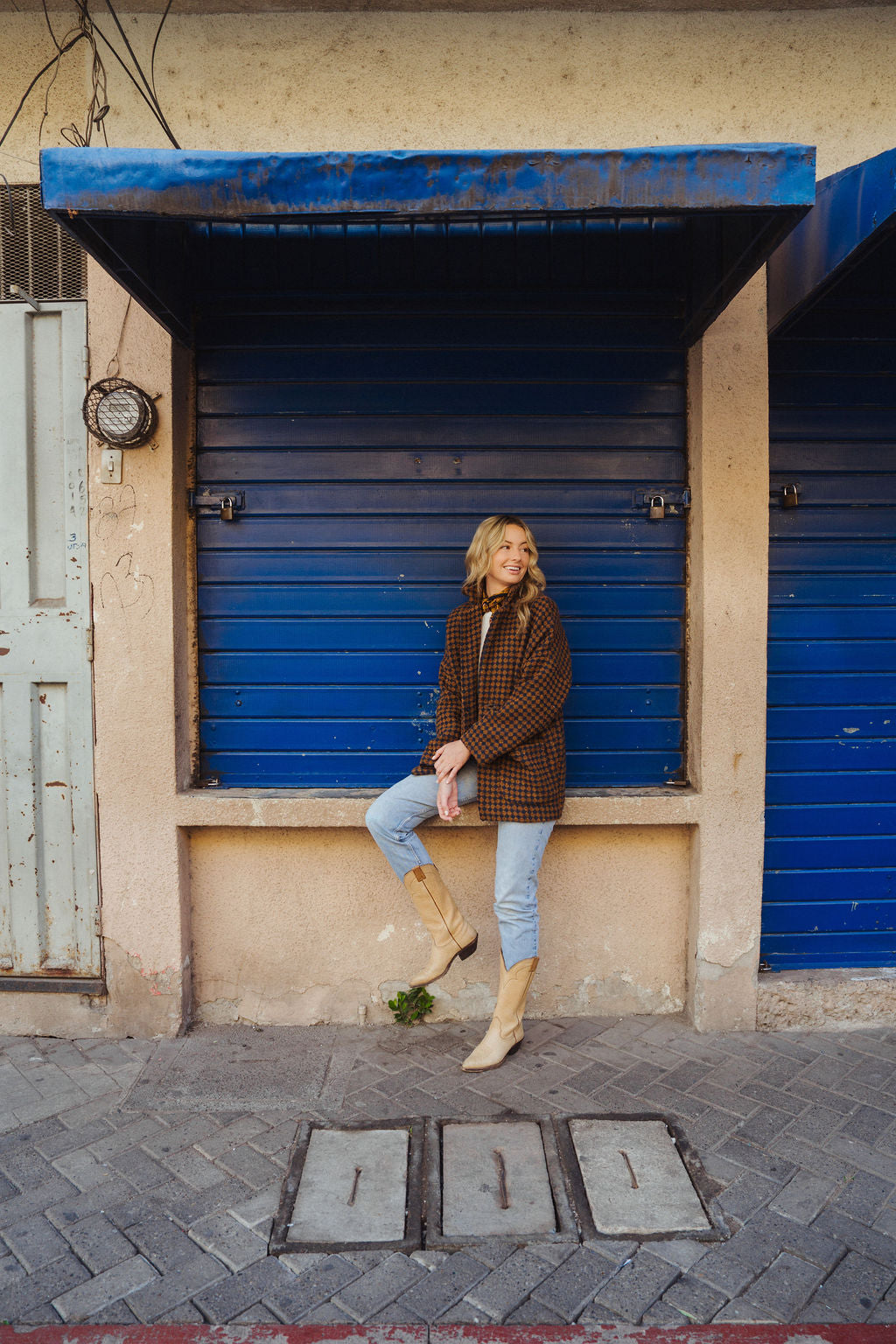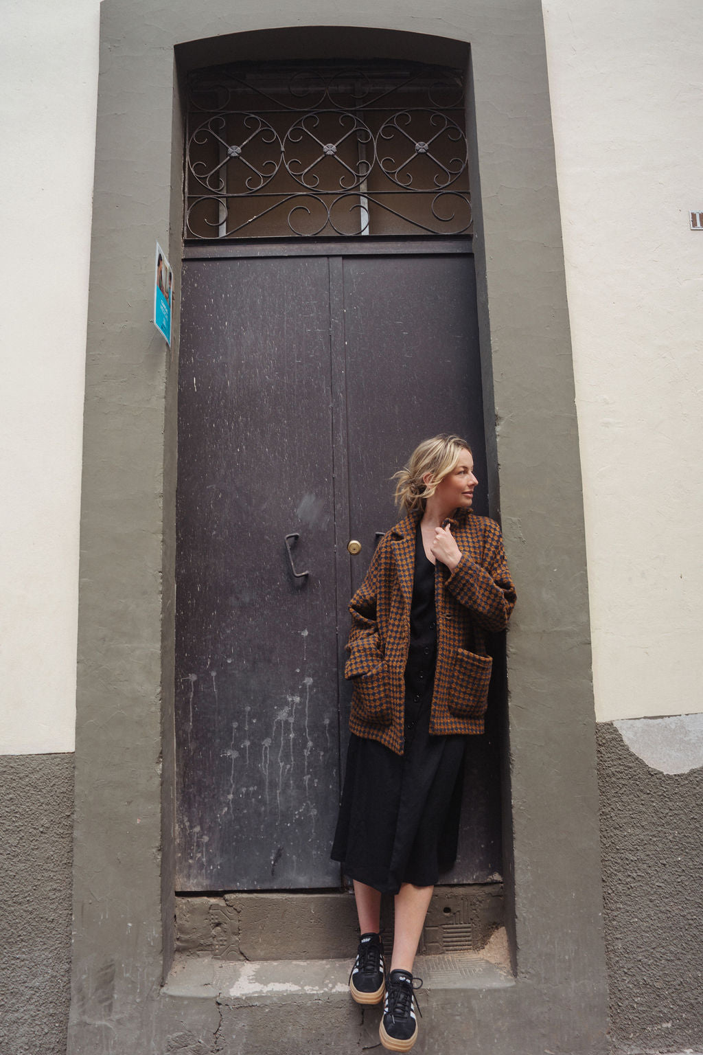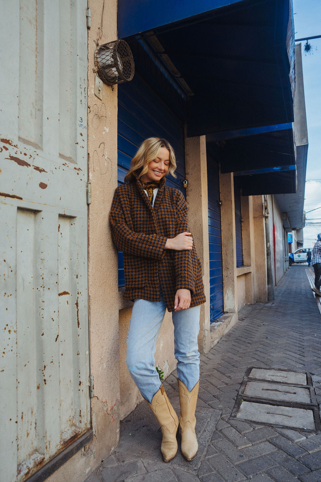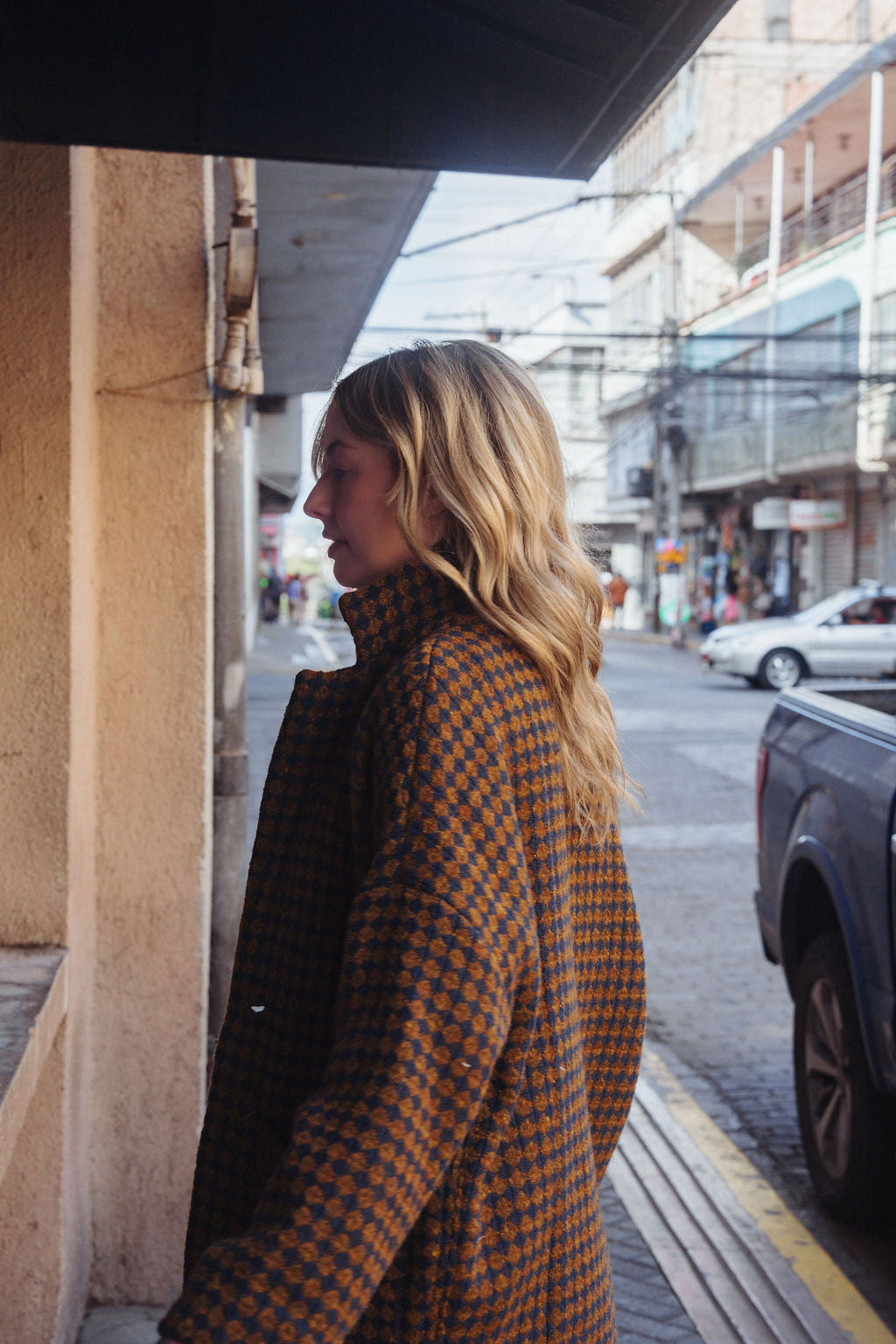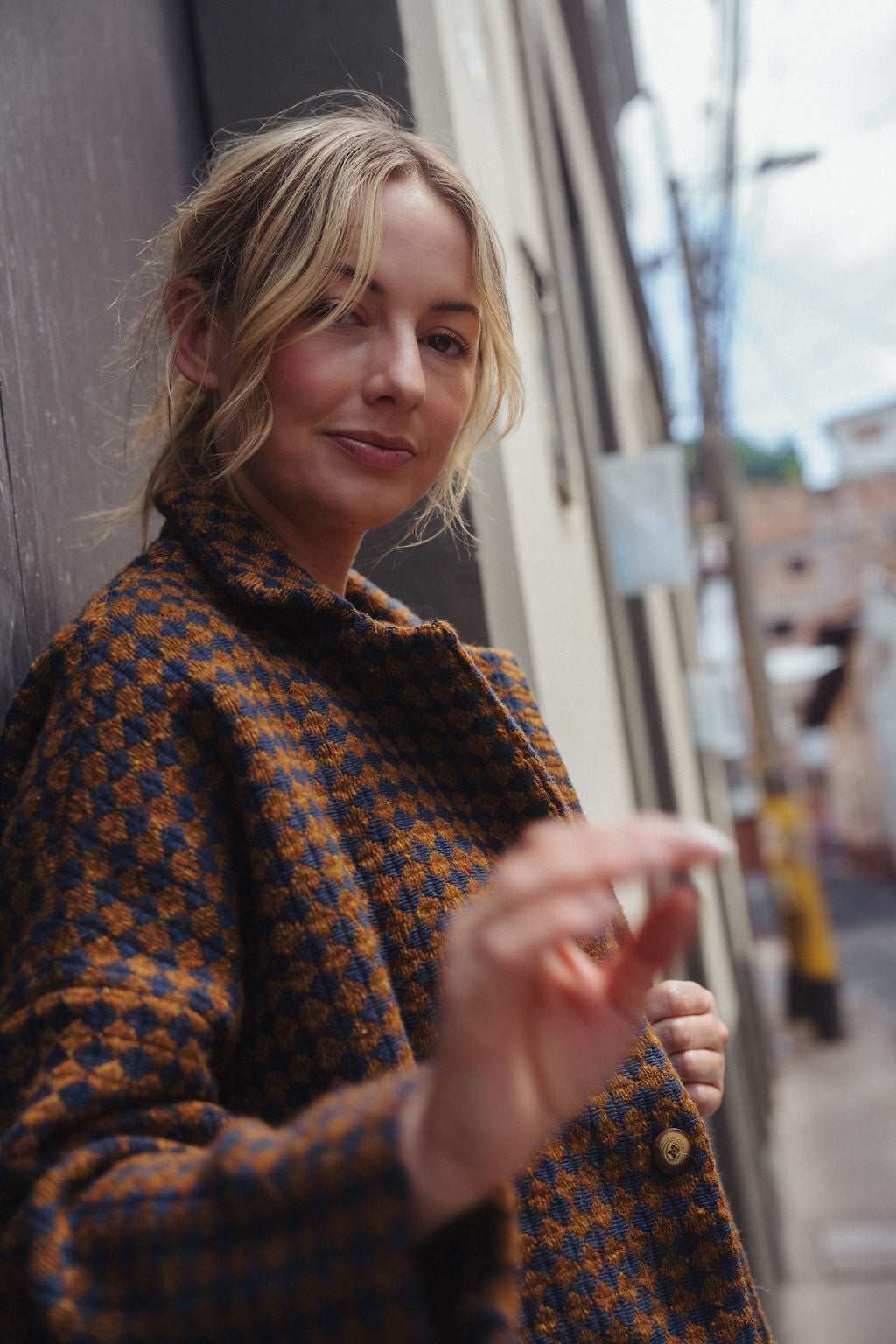 Portuguese Wool Pieper Coat in Brown and Navy Small Check Made to Order