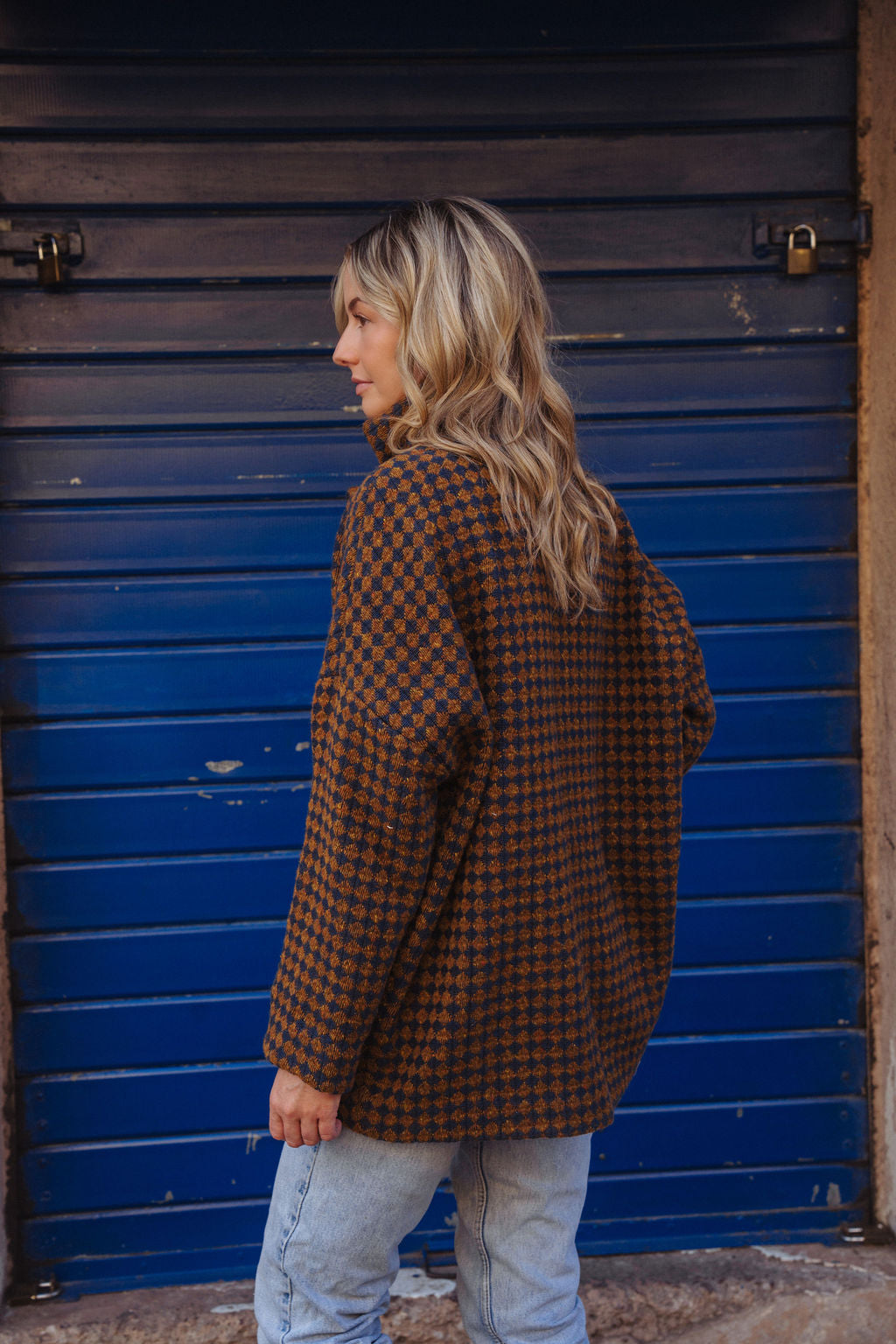 This jacket is oversized in the shoulders with a dropped sleeve and fitted in the hip. To find the best size measure the fullest part of your hip and compare with the measurements listed. You will want the hip measurement to be the same as your own or an inch or two over your size. If you would like more of an oversized fit as the mix-and-match images it is best to size up one size. If you would like more of a fitted look as the teal print images it is best to choose your true size. The rest of the images the models are wearing their typical size.