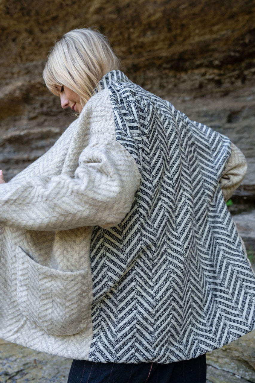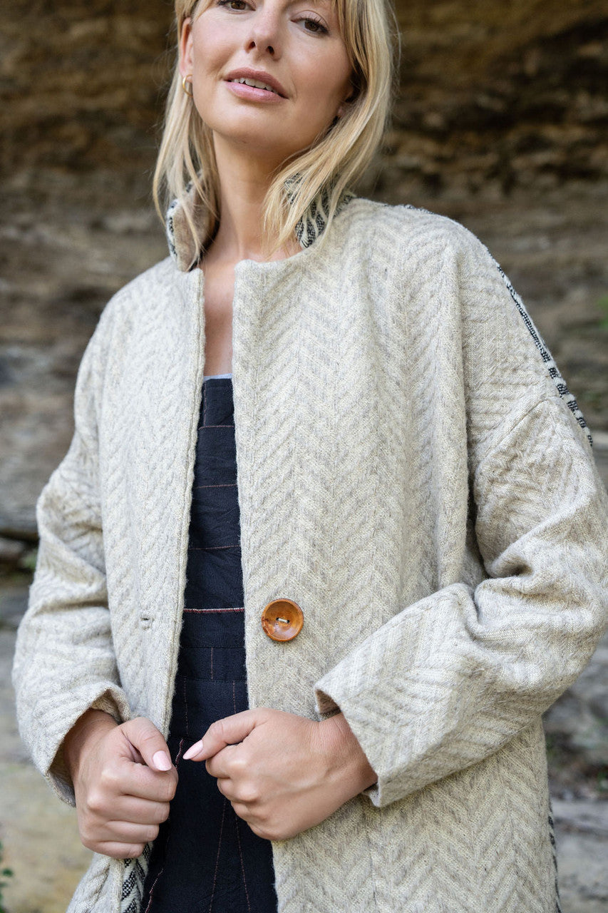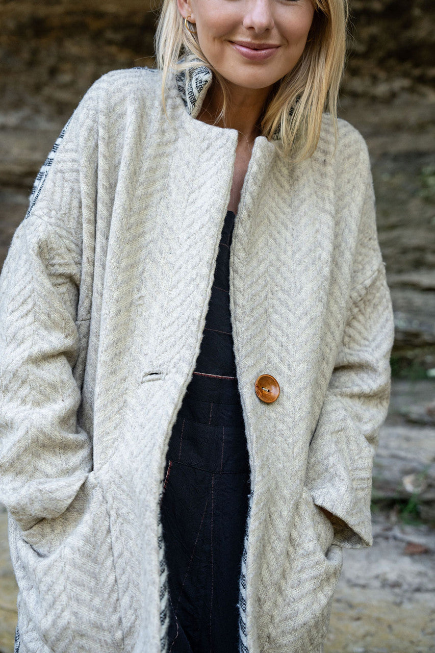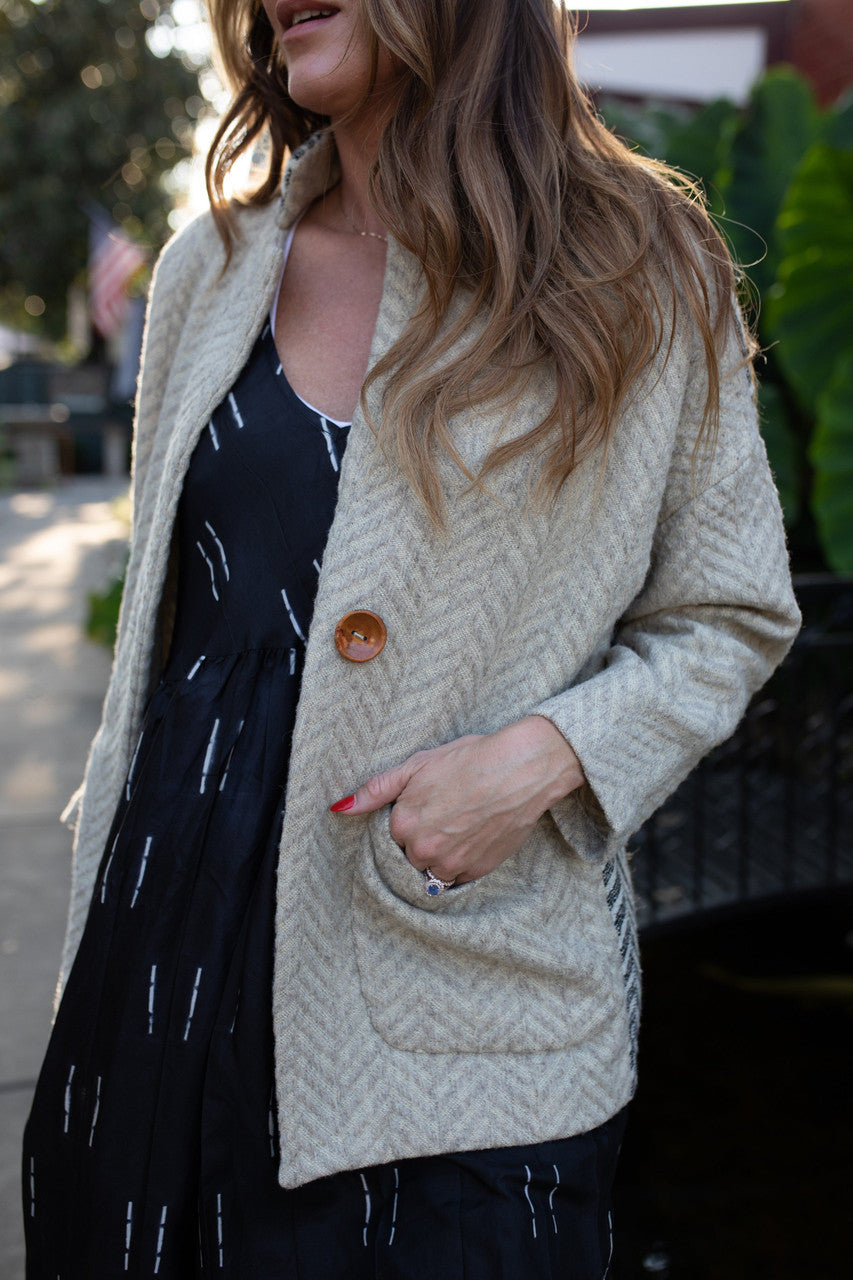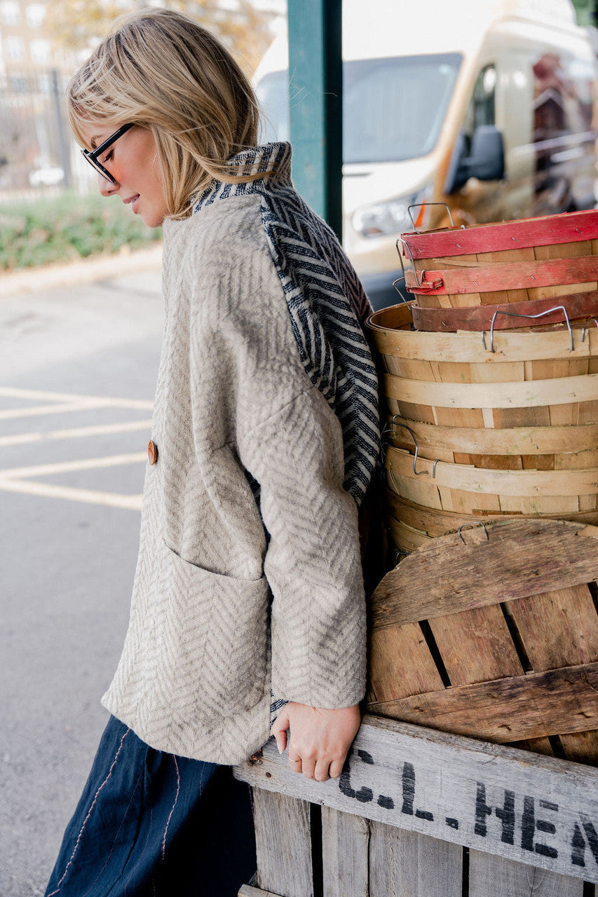 Portuguese Wool Pieper Coat in Neutral Mix-Match Herringbone Made to Order