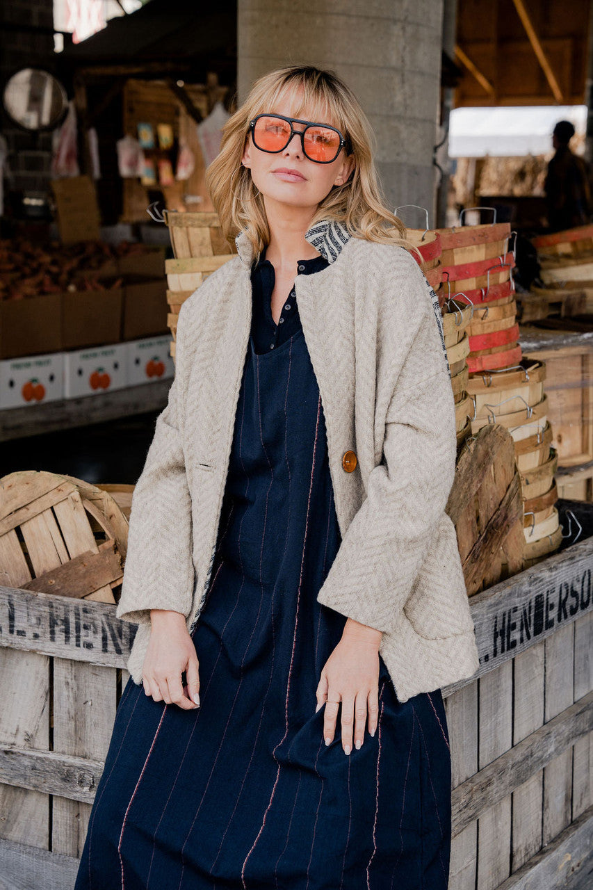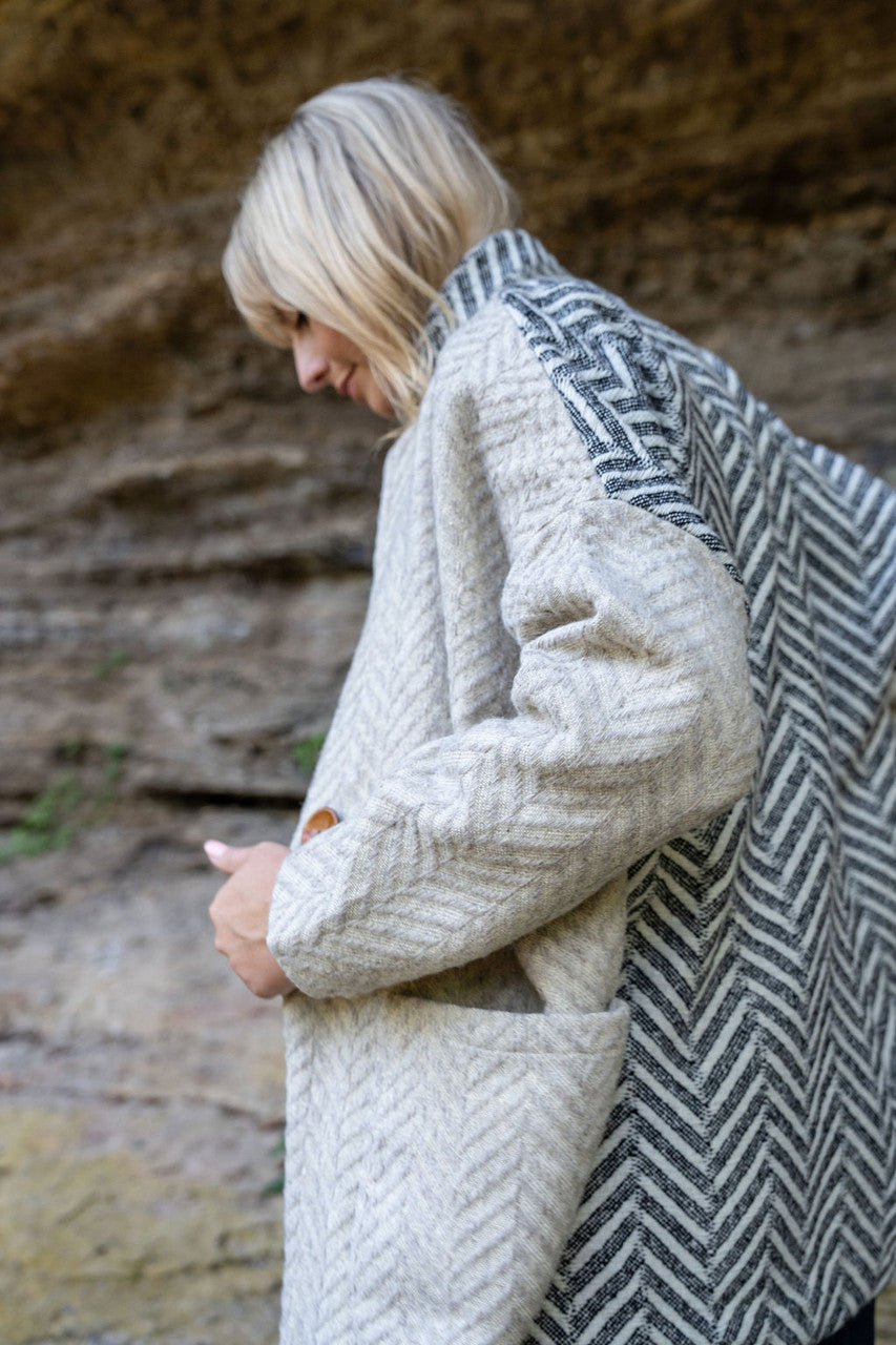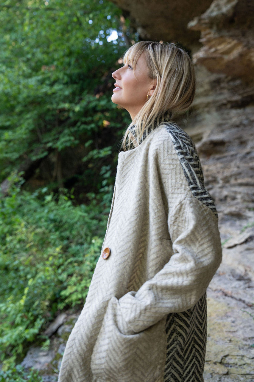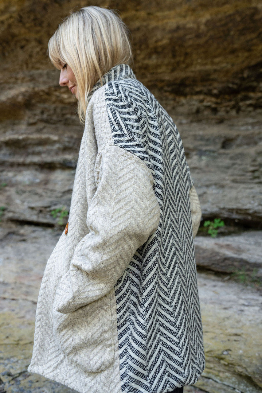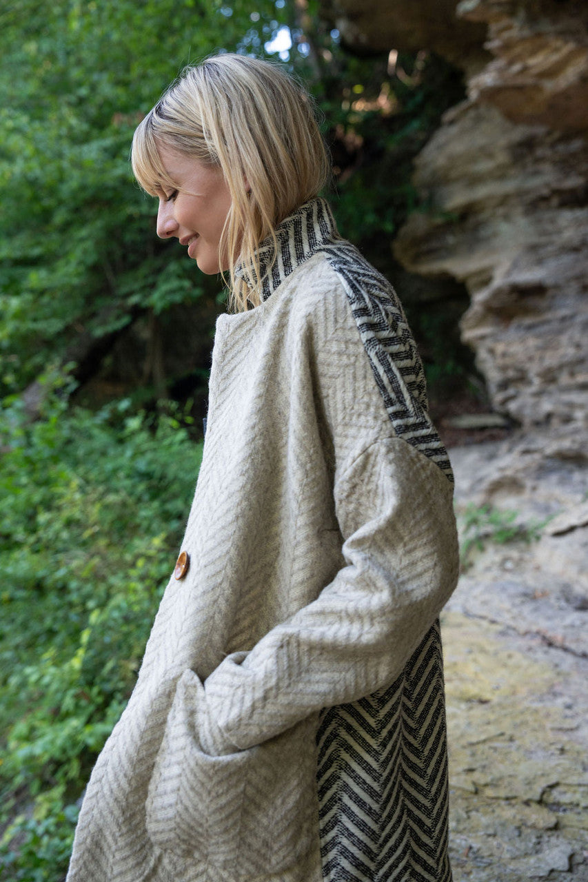 Portuguese Wool Pieper Coat in Neutral Mix-Match Herringbone Made to Order
