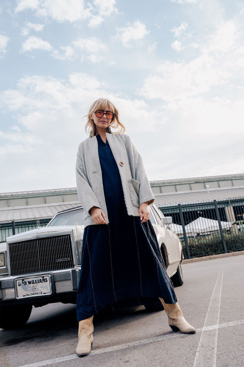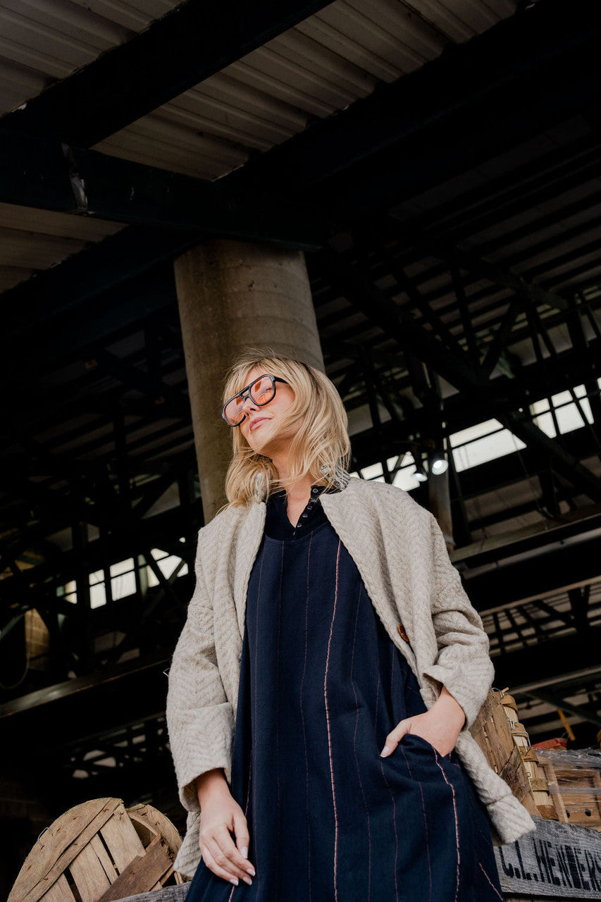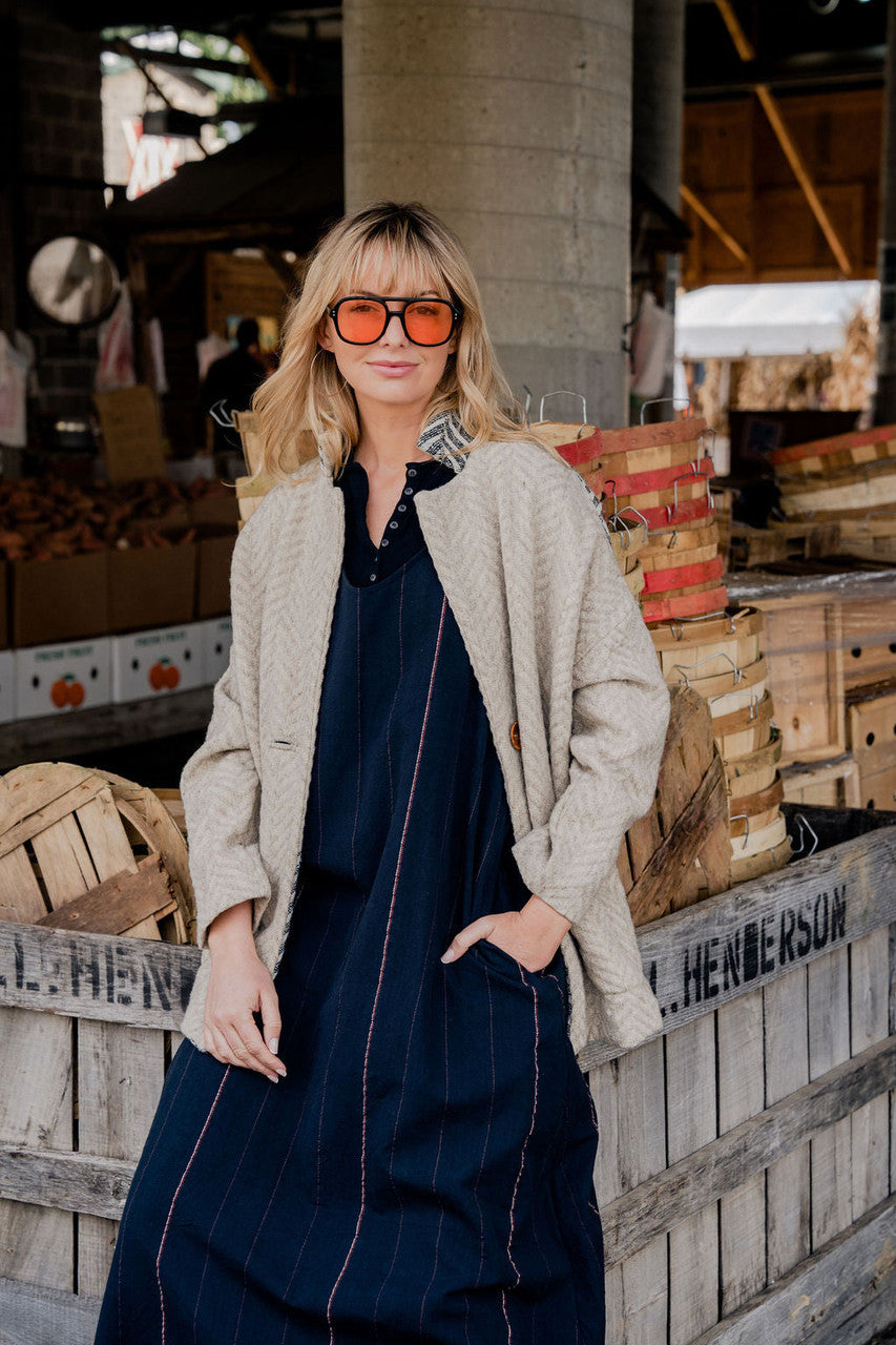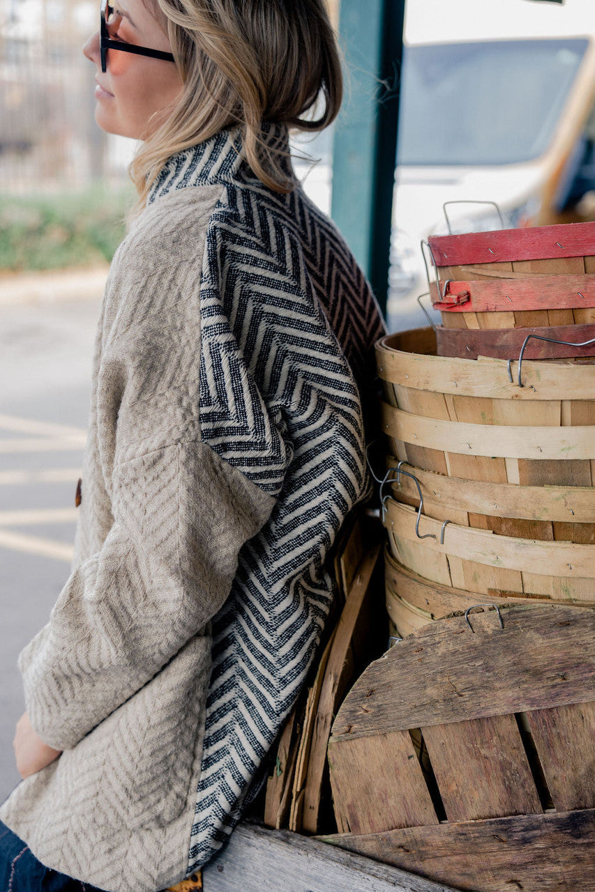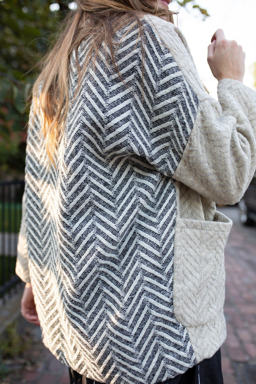 Portuguese Wool Pieper Coat in Neutral Mix-Match Herringbone Made to Order