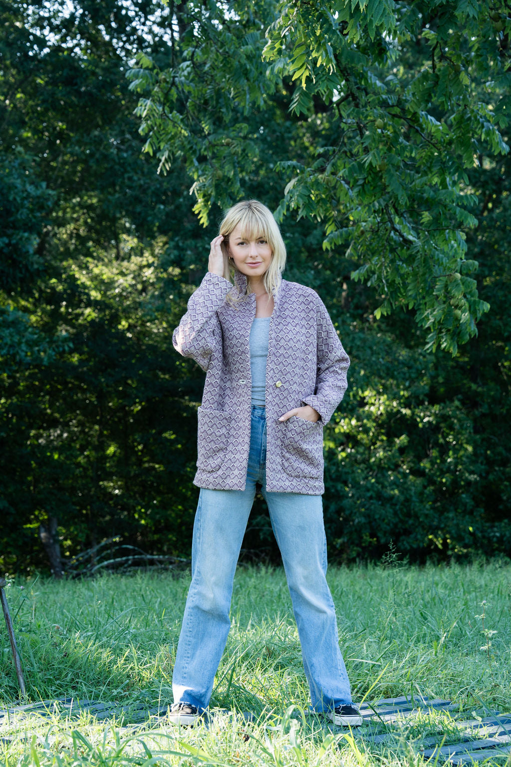 THIS IS A MADE TO ORDER JACKET THAT WILL SHIP FEBRUARY 2026. Ordering the jacket in advance will give us 2 months to weave the fabric, 2 months to sew the jacket, and a month for customs and shipping times.