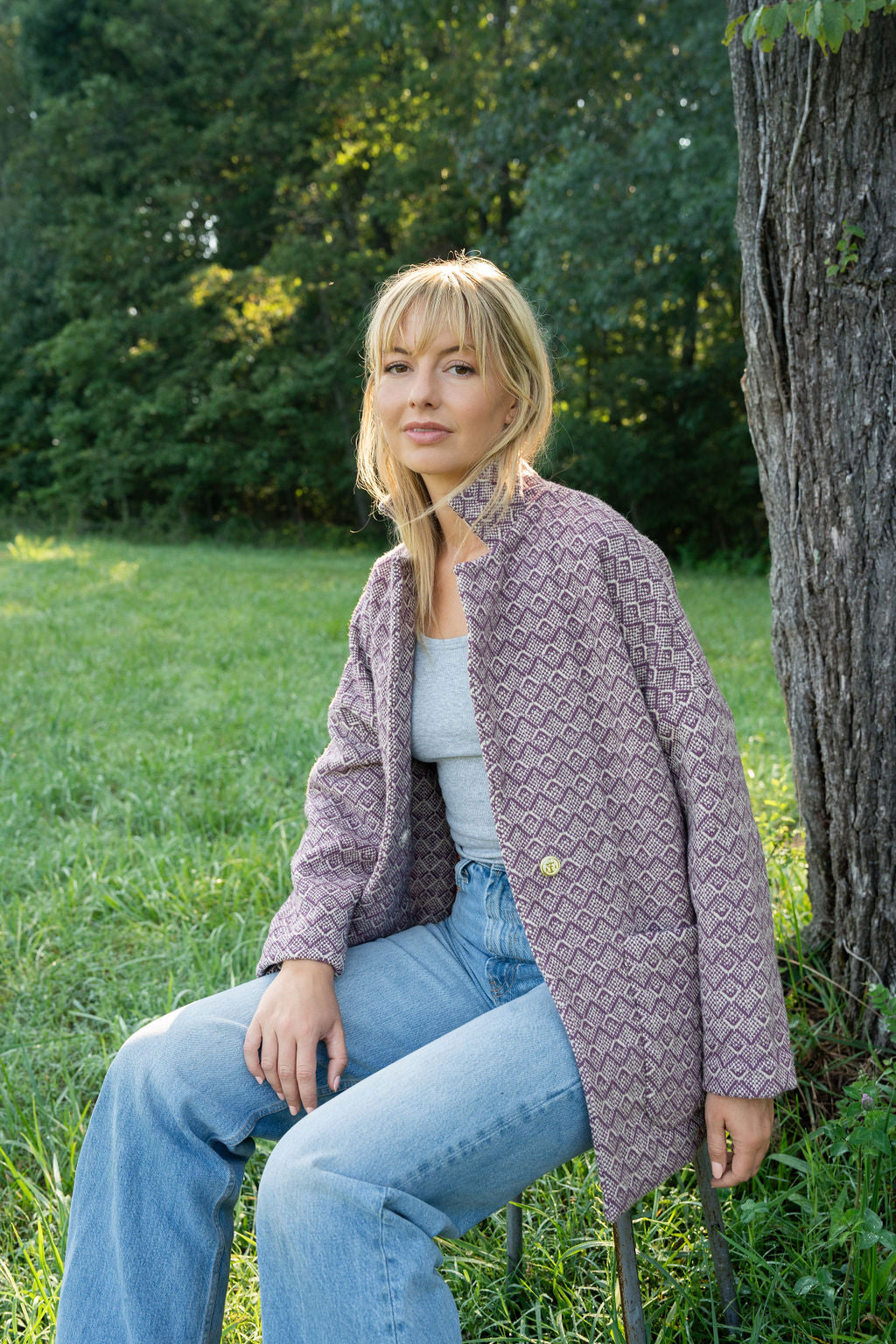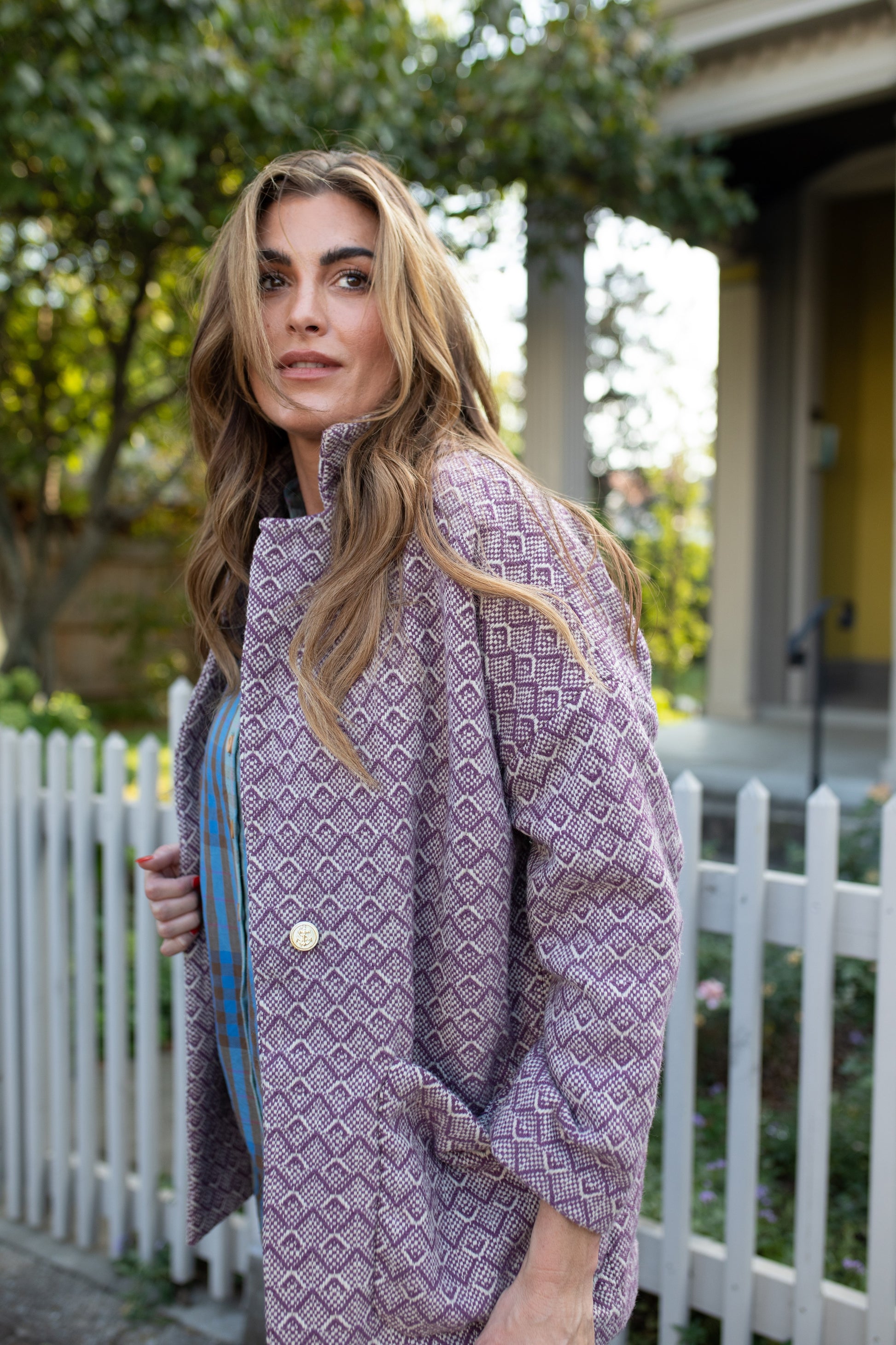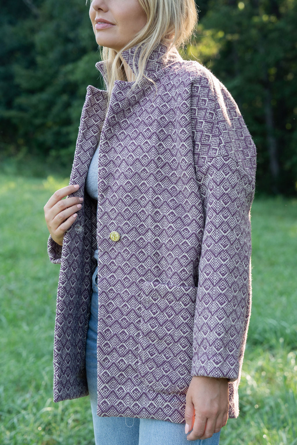 Portuguese Wool Pieper Coat in Purple Dot Made to Order