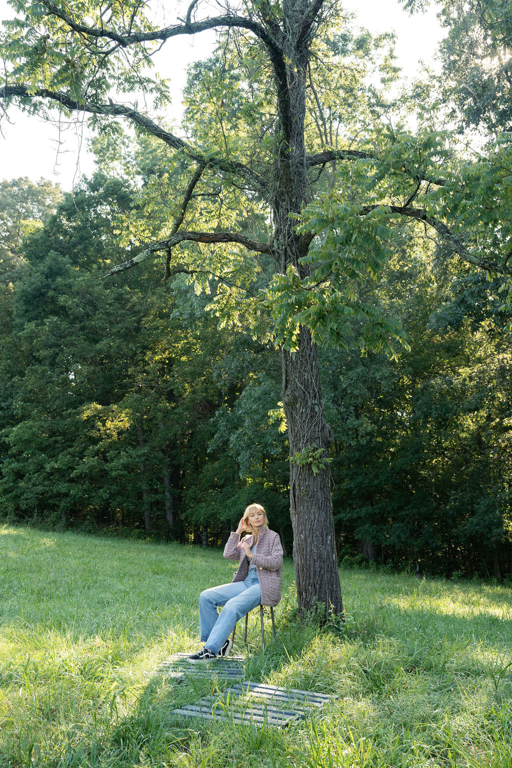 This jacket is intended to be oversized in the shoulders with a dropped sleeve and is most fitted at the hip. To find the best size, we recommend measuring the fullest part of your hip and choose the closest to that measurement below.