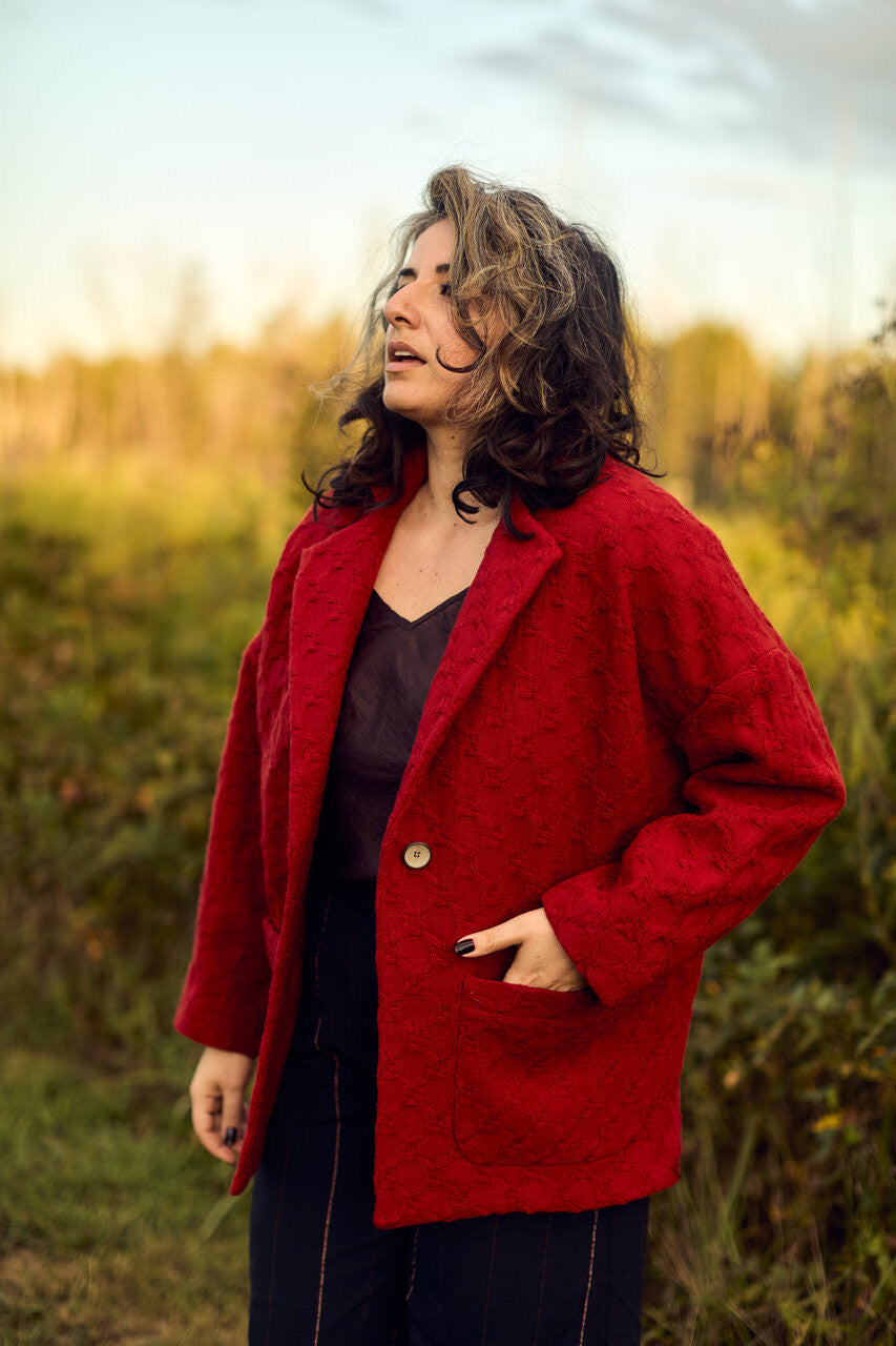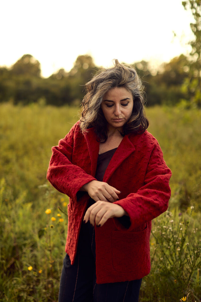 THIS IS A MADE TO ORDER JACKET THAT WILL SHIP FEBRUARY 2026. Ordering the jacket in advance will give us 2 months to weave the fabric, 2 months to sew the jacket, and a month for customs and shipping times.
