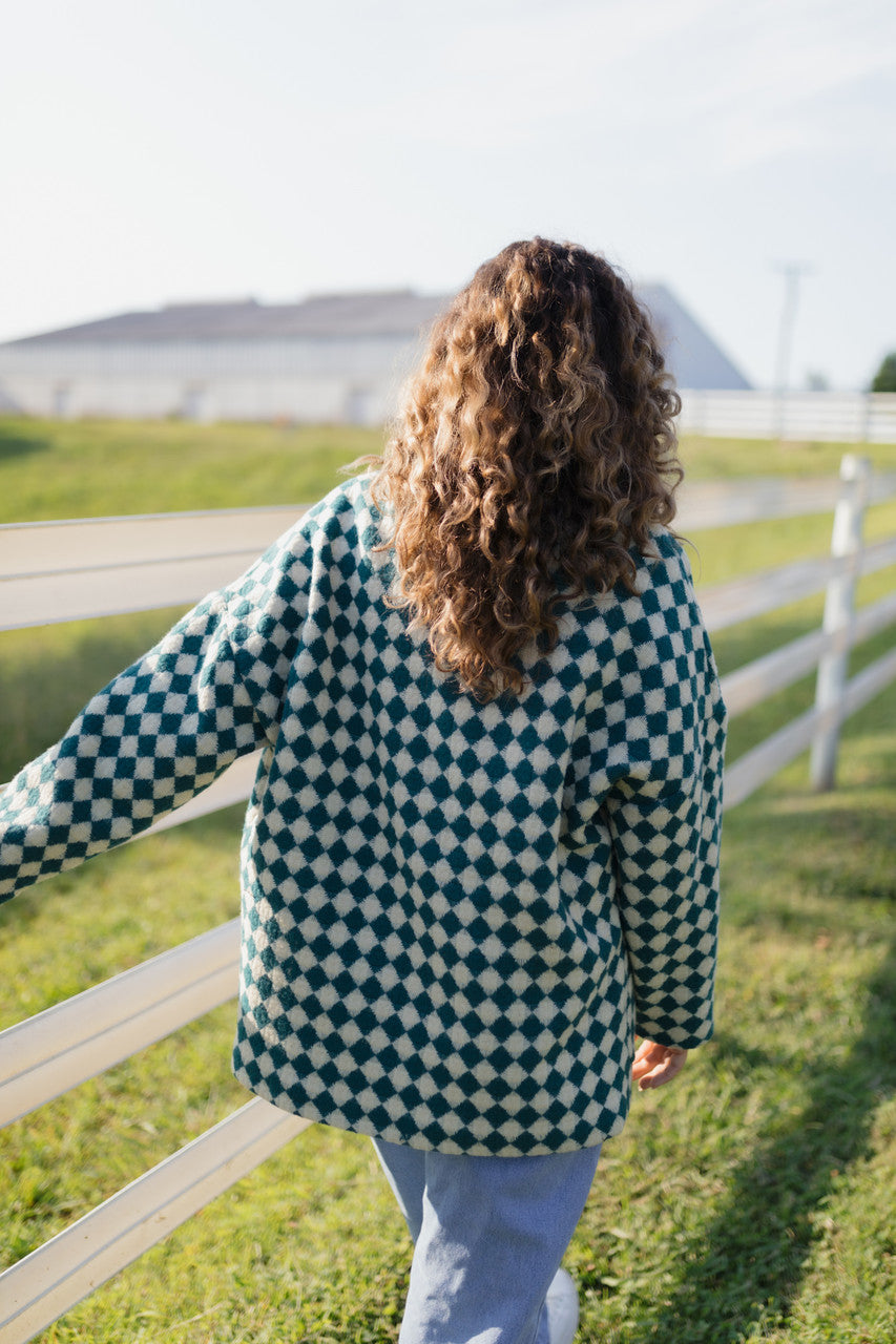 Portuguese Wool Pieper Coat in Teal and Cream Check Made to Order