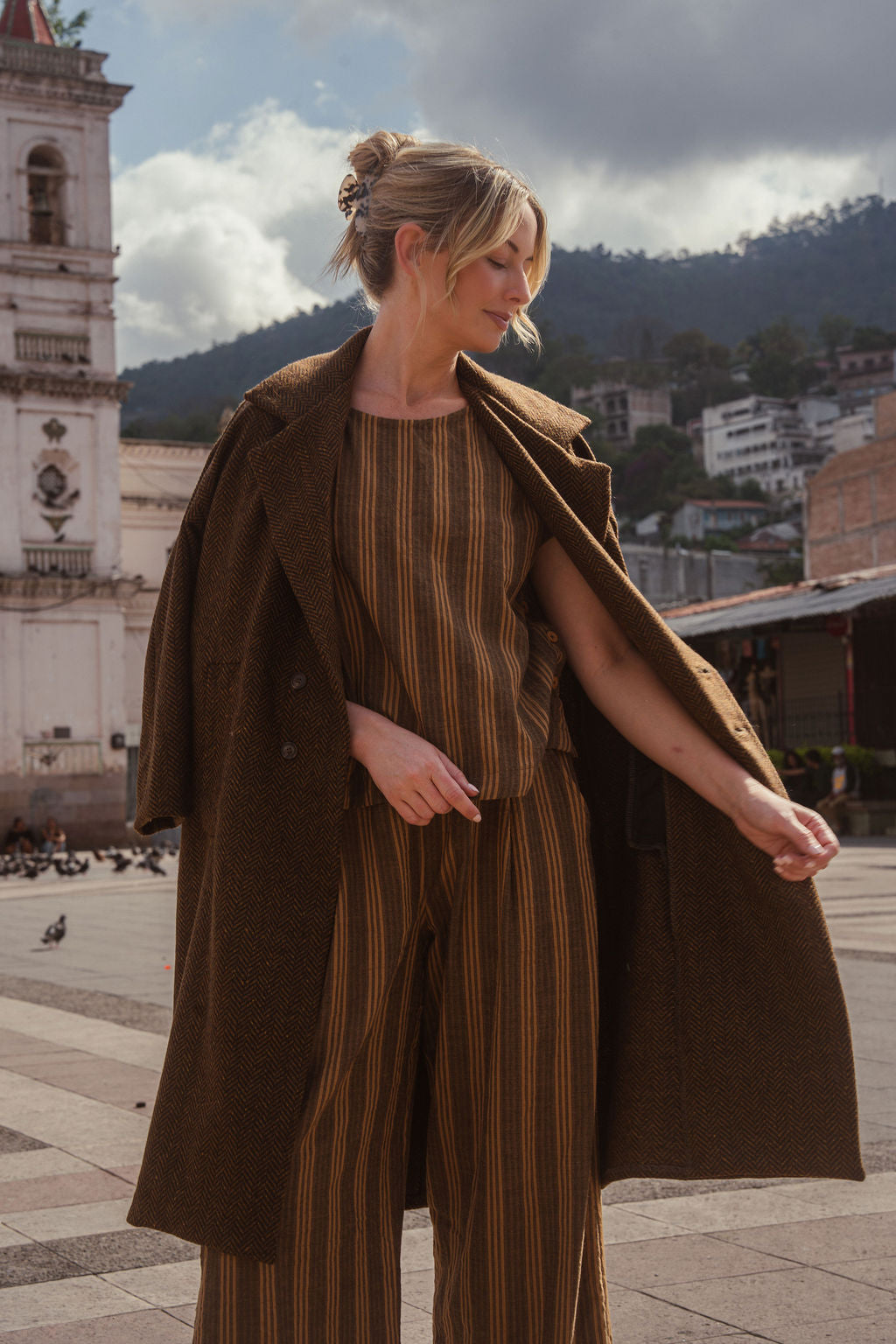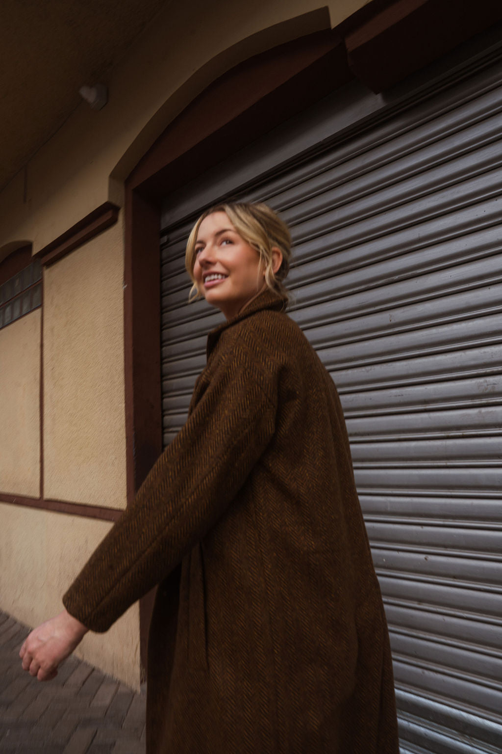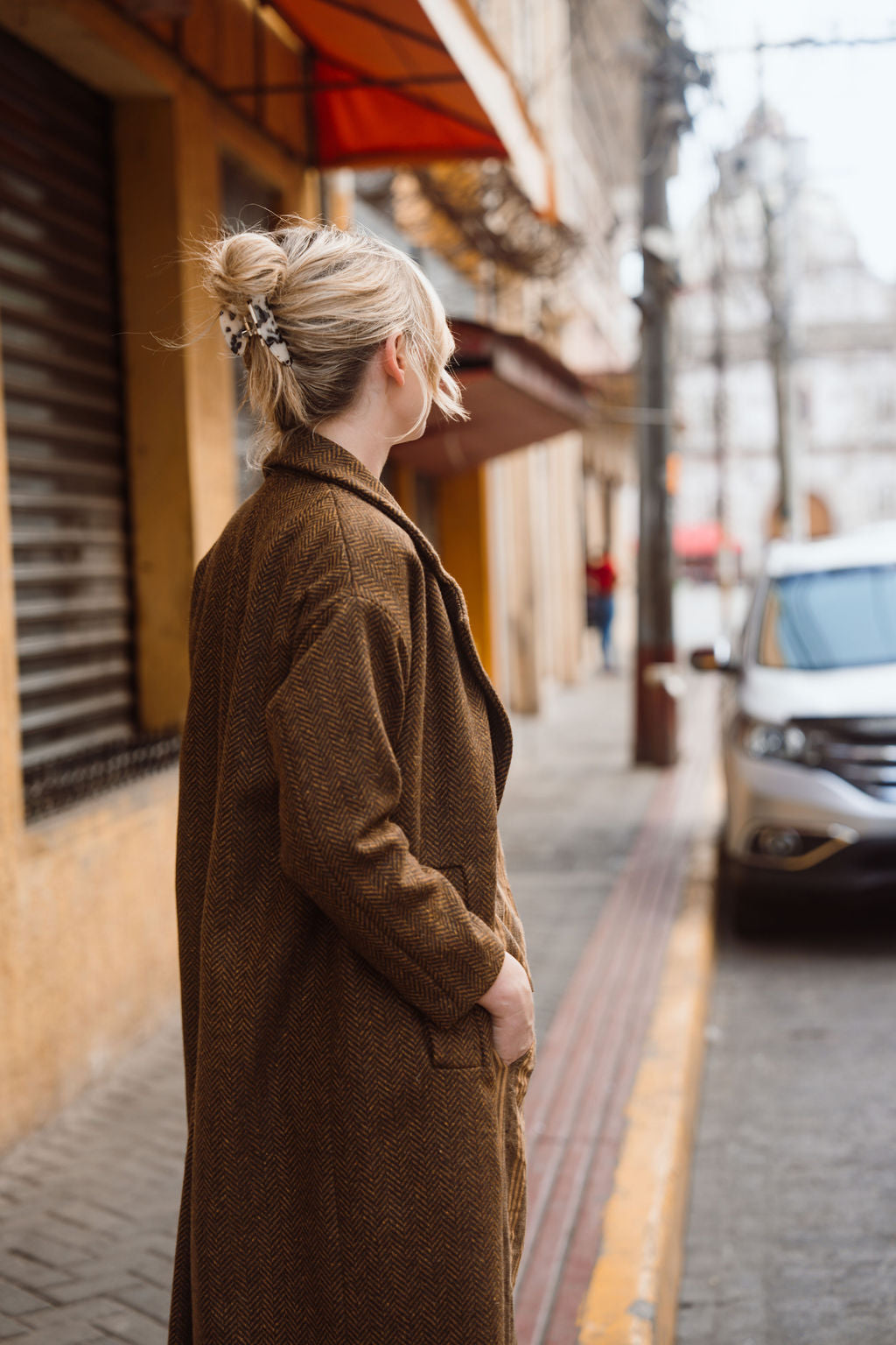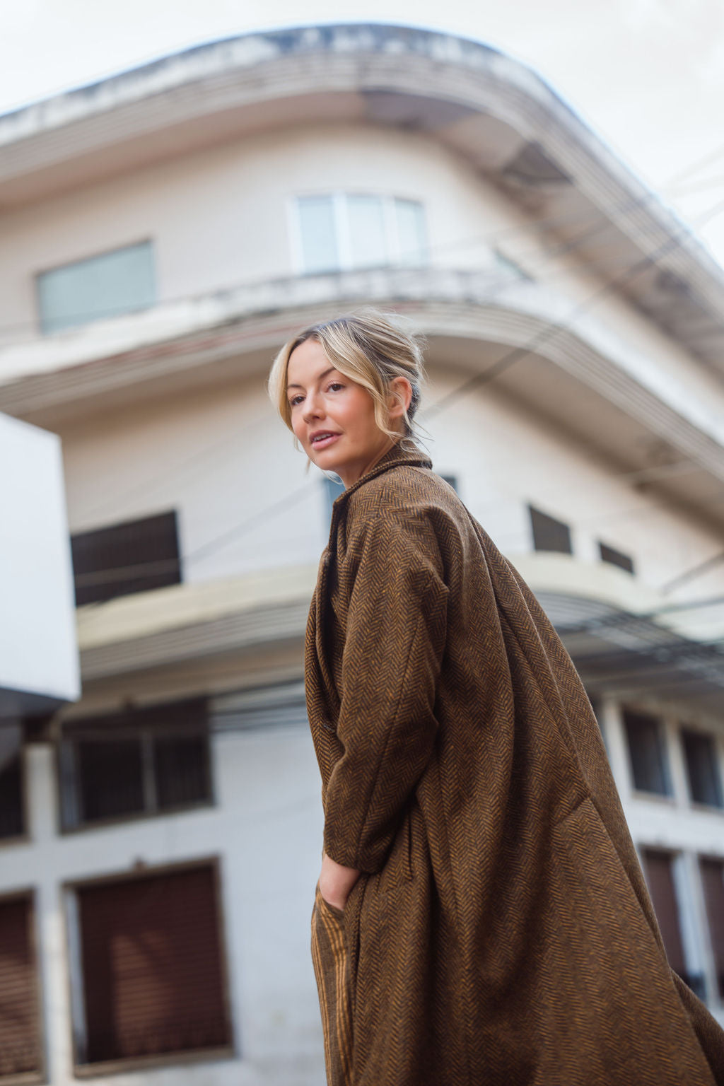 Portuguese Wool Polly Coat in Black and Brown Small Herringbone Made to Order