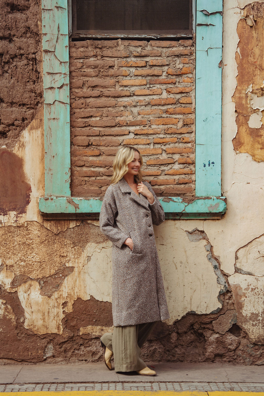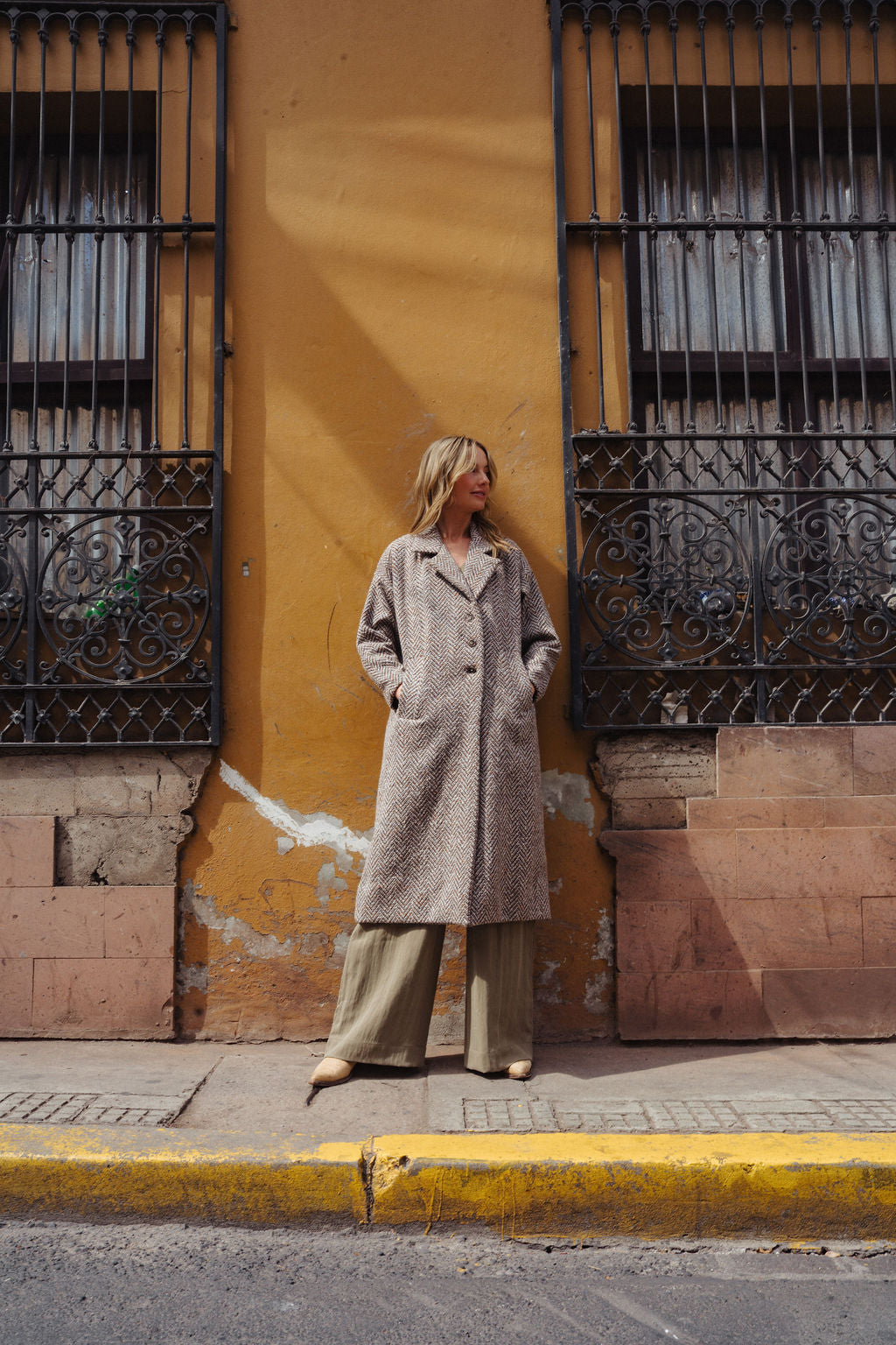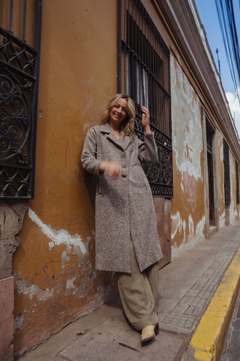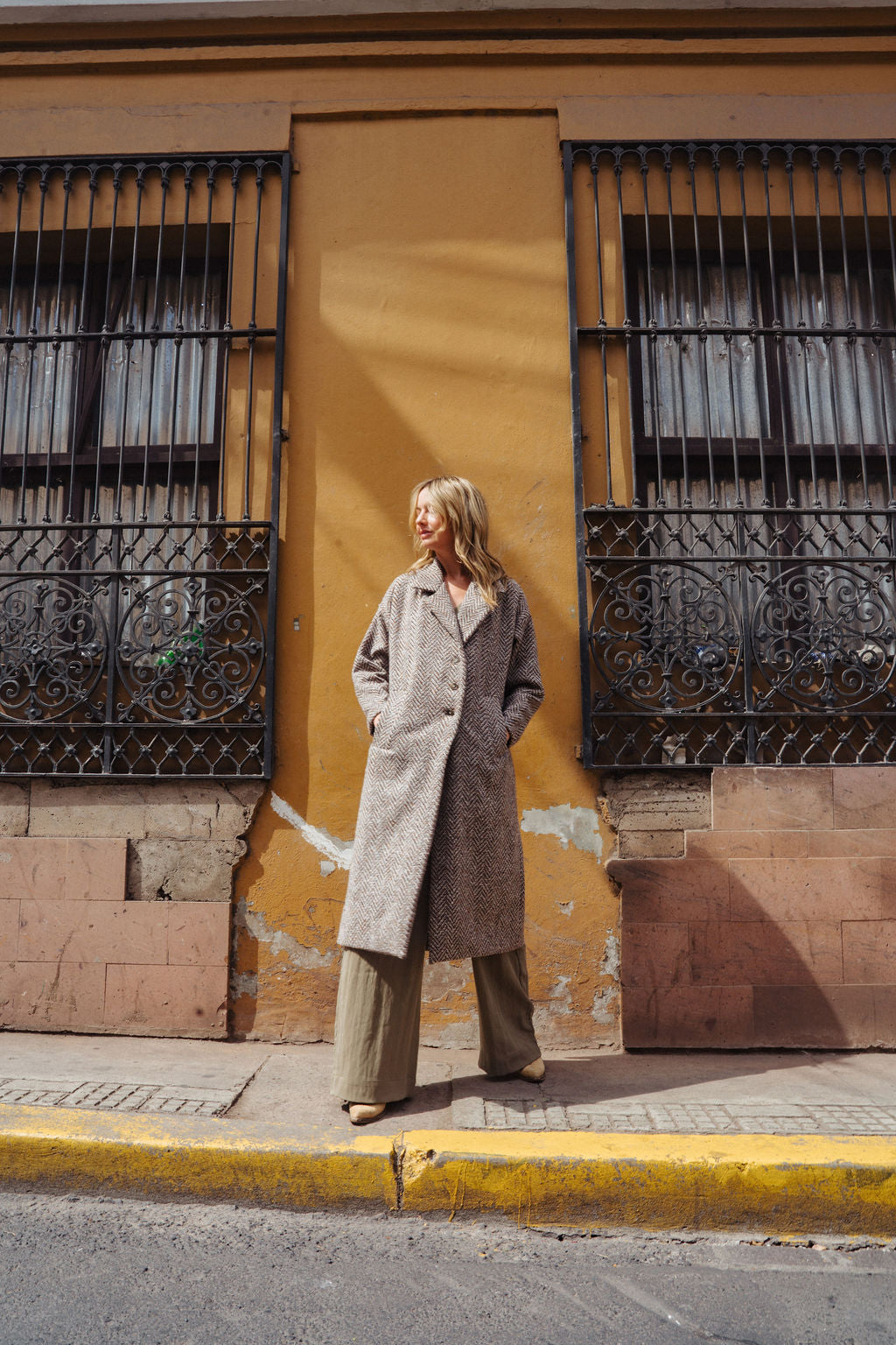 Portuguese Wool Polly Coat in Heathered Brown and Cream Herringbone Made to Order