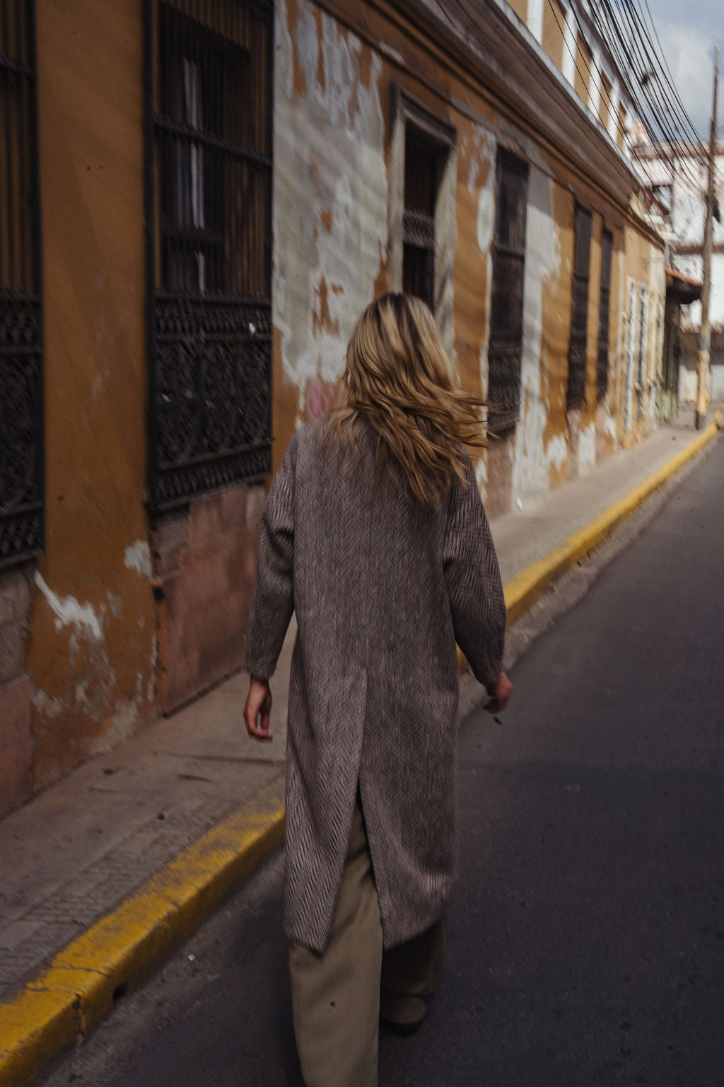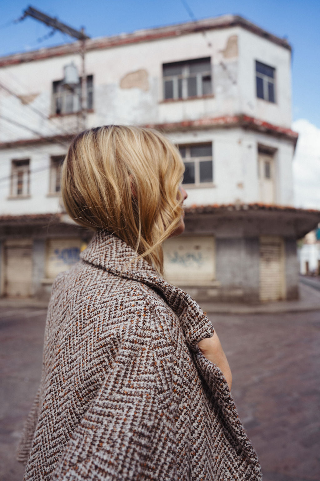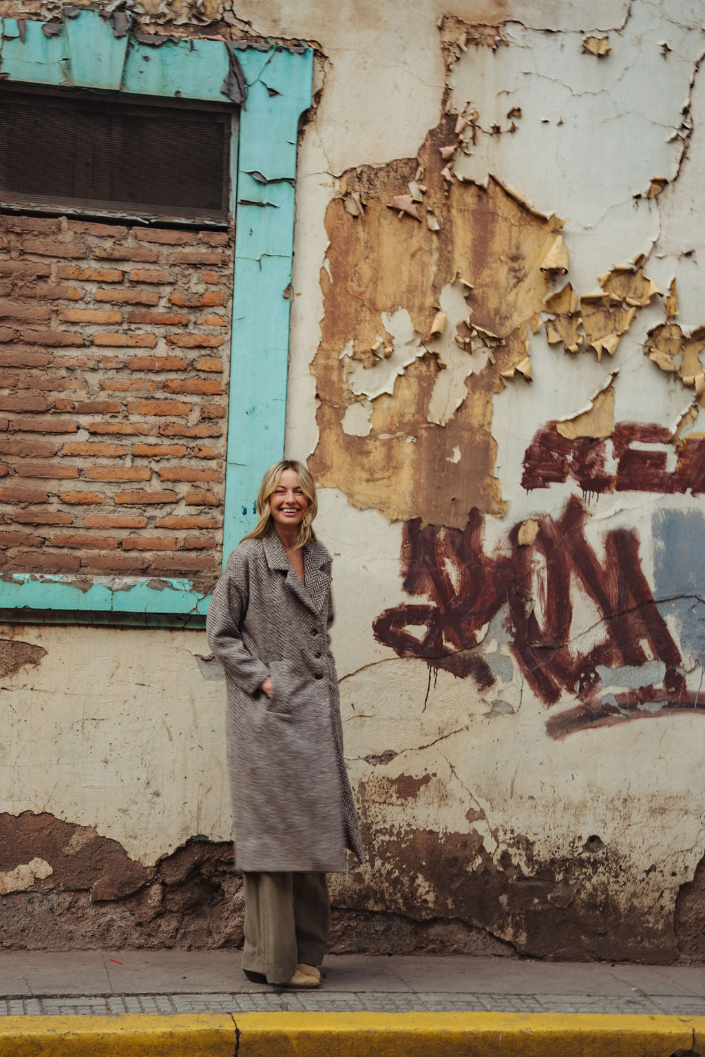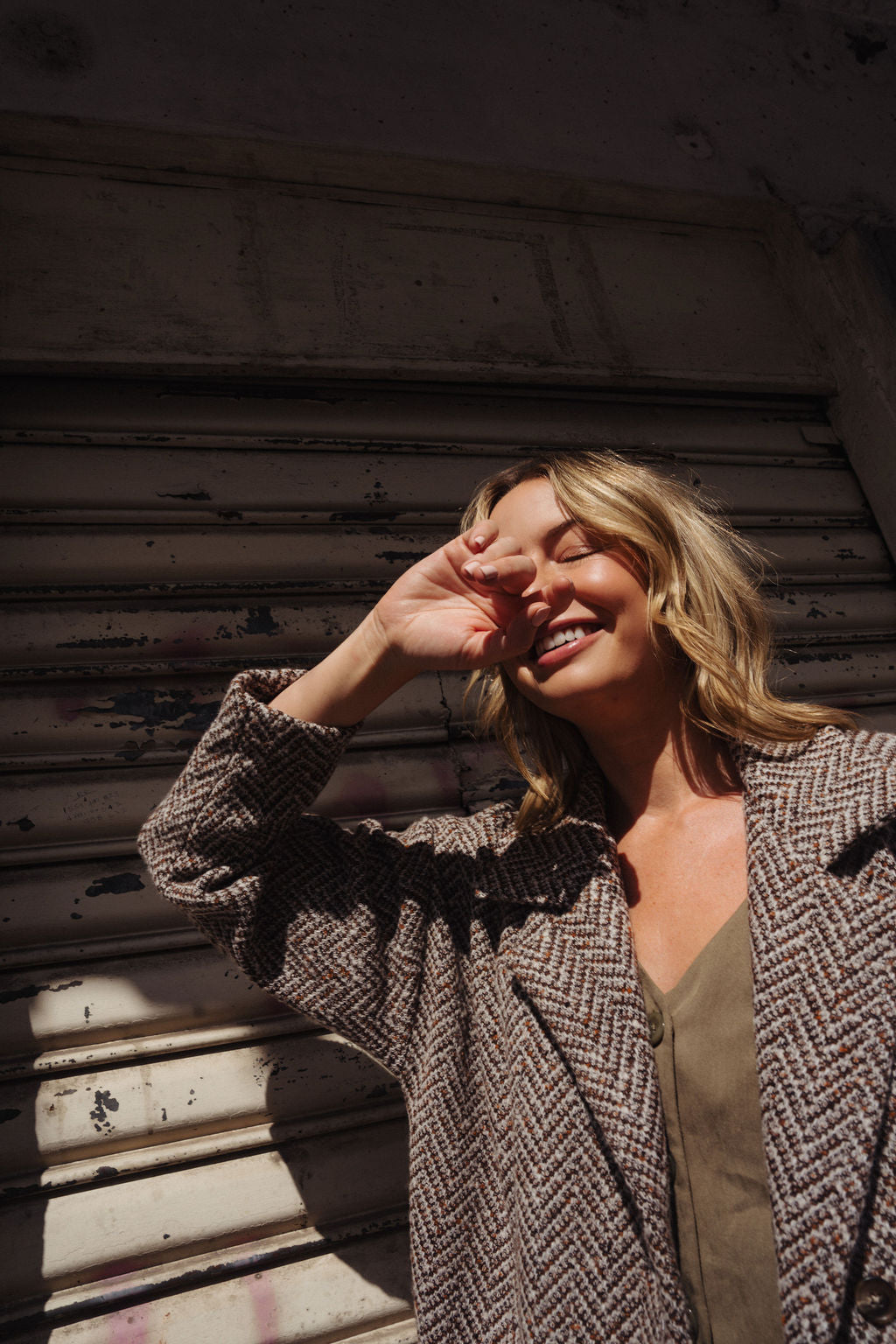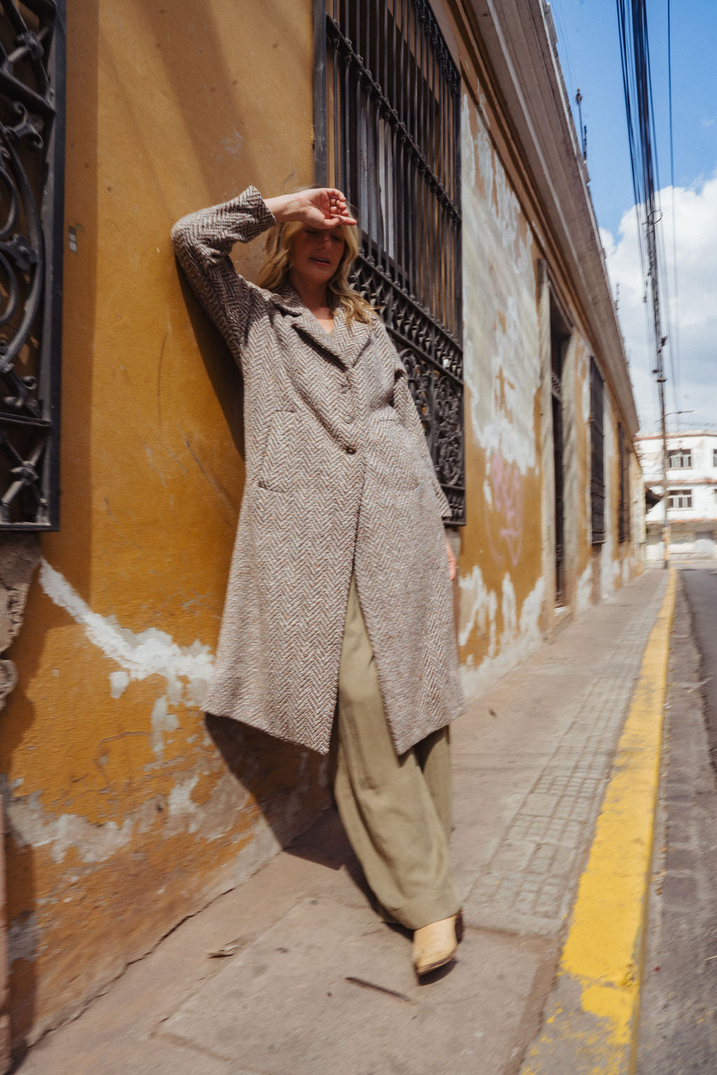 Portuguese Wool Polly Coat in Heathered Brown and Cream Herringbone Made to Order