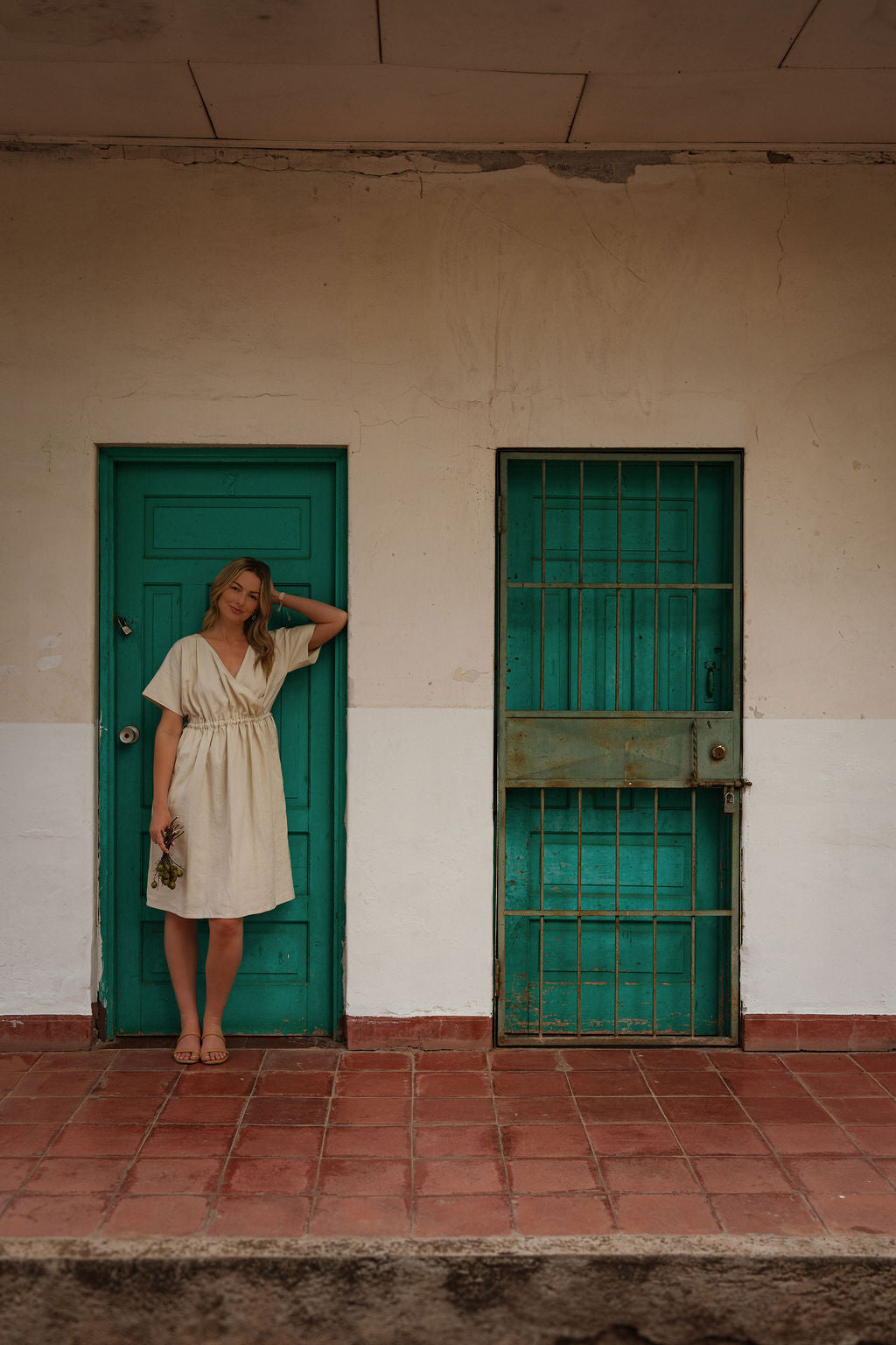 Designed to be an easy summer dress with drawstring waist and pockets in the loveliest lightweight linen.