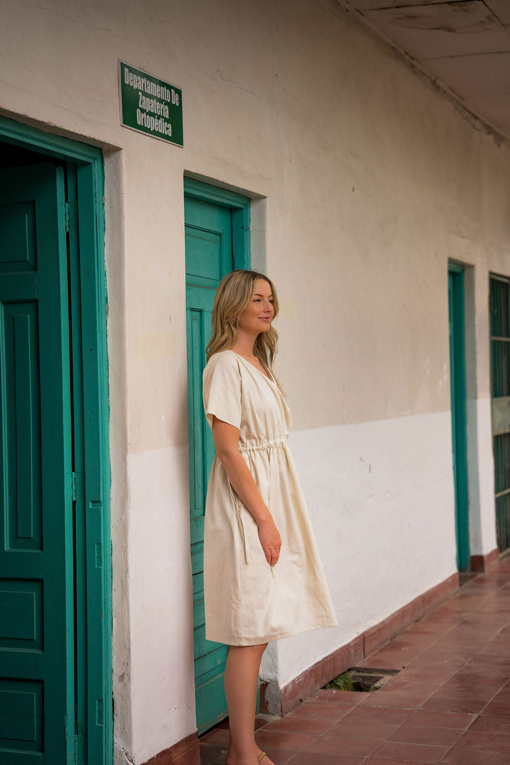 *Please note this is a very high waisted dress and is intended to be oversized. We suggest sizing up one if you would like the drawstring to be lower.