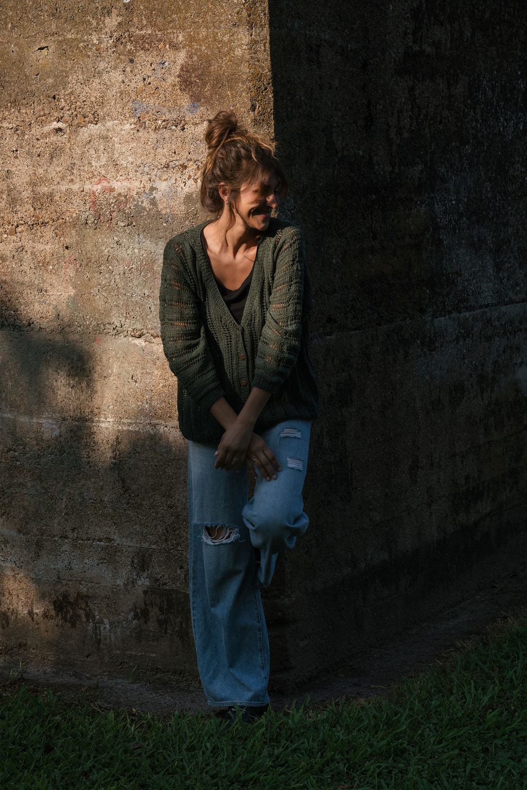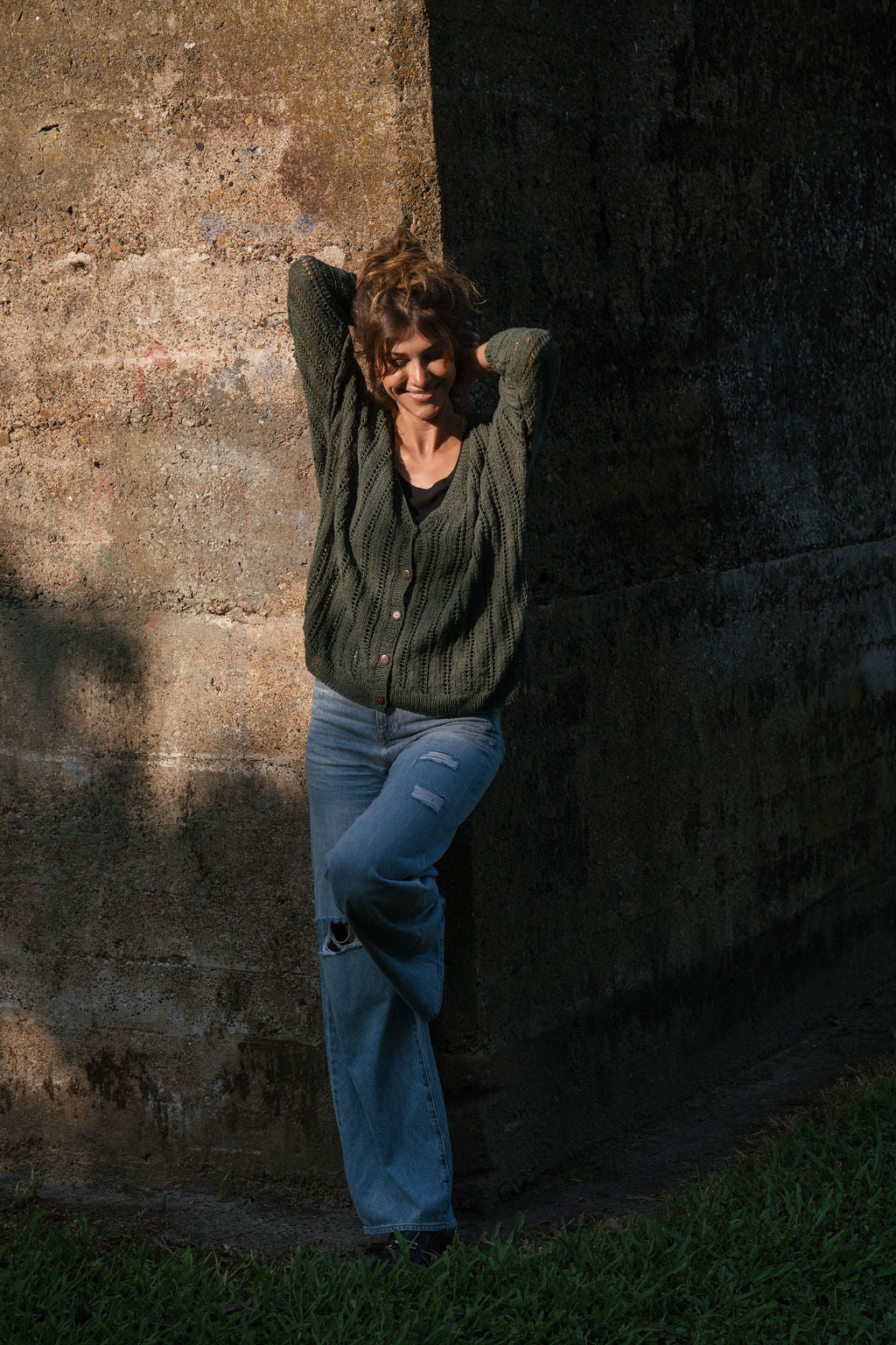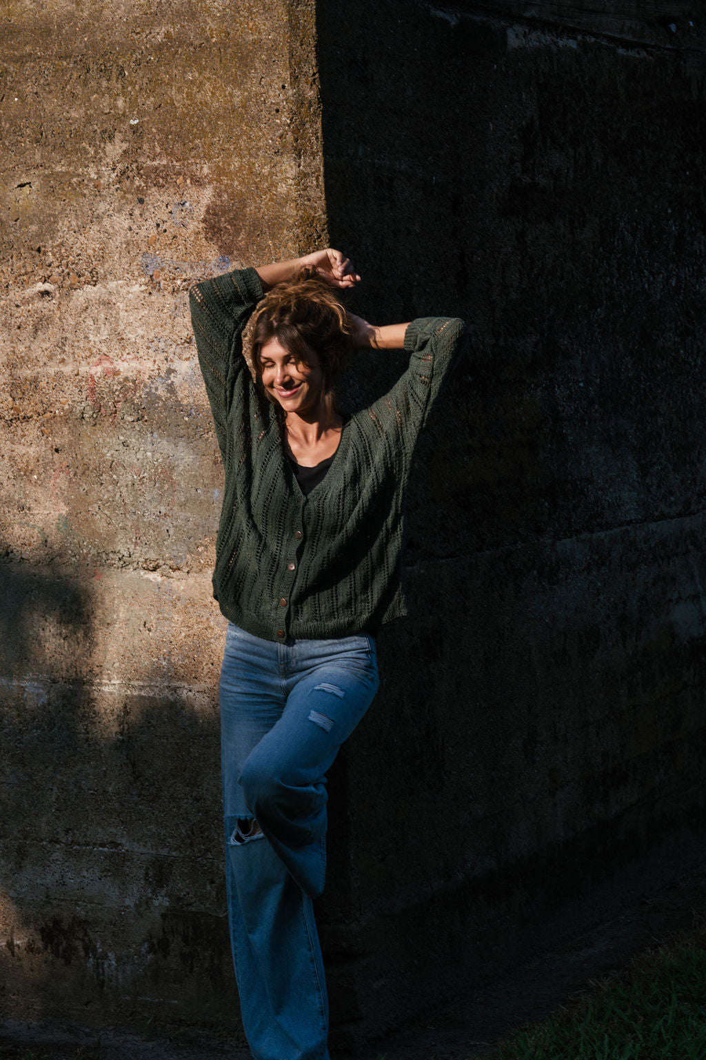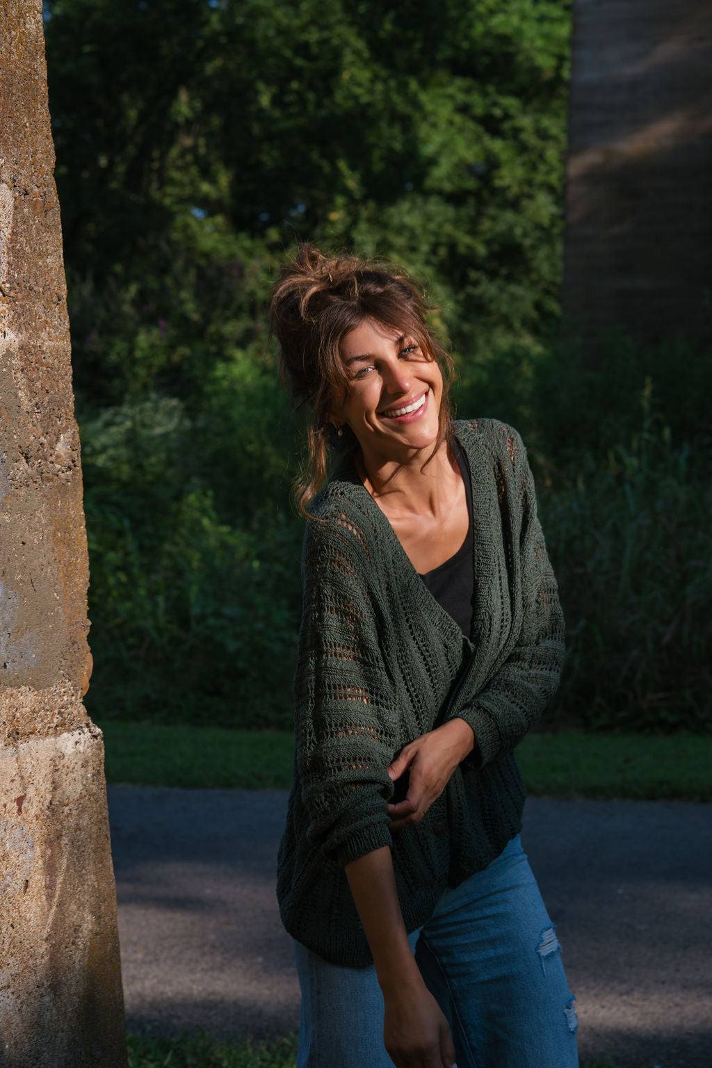Trish Lace Cotton Sweater in Pine Green Made to Order