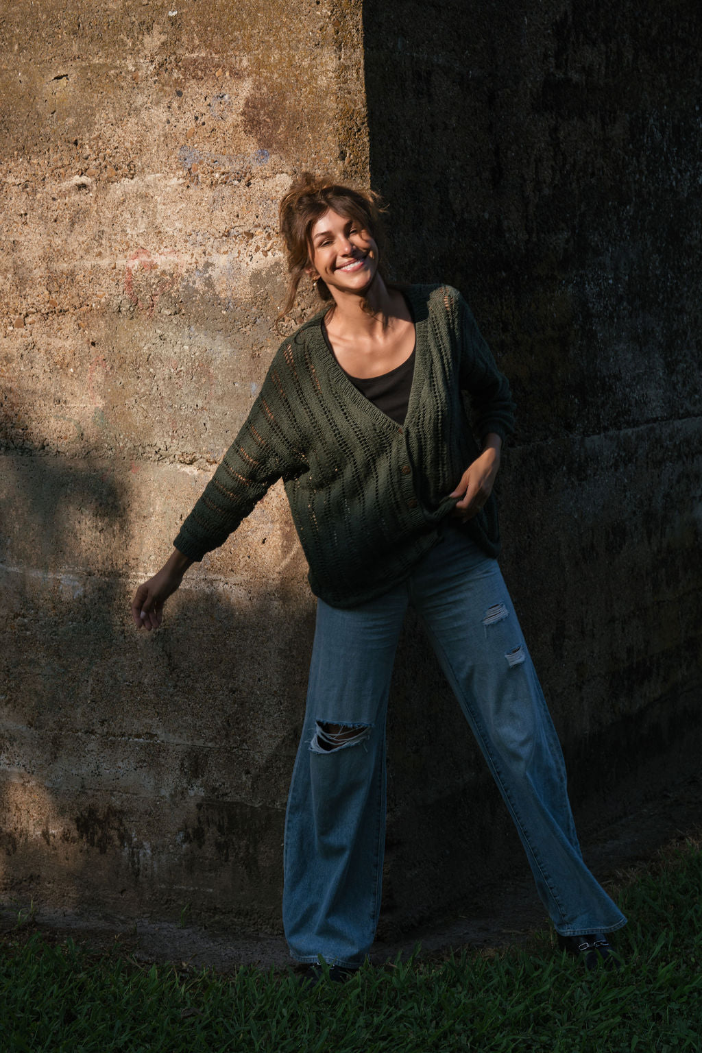Lace knit cotton cardigan with an easy and loose fit.